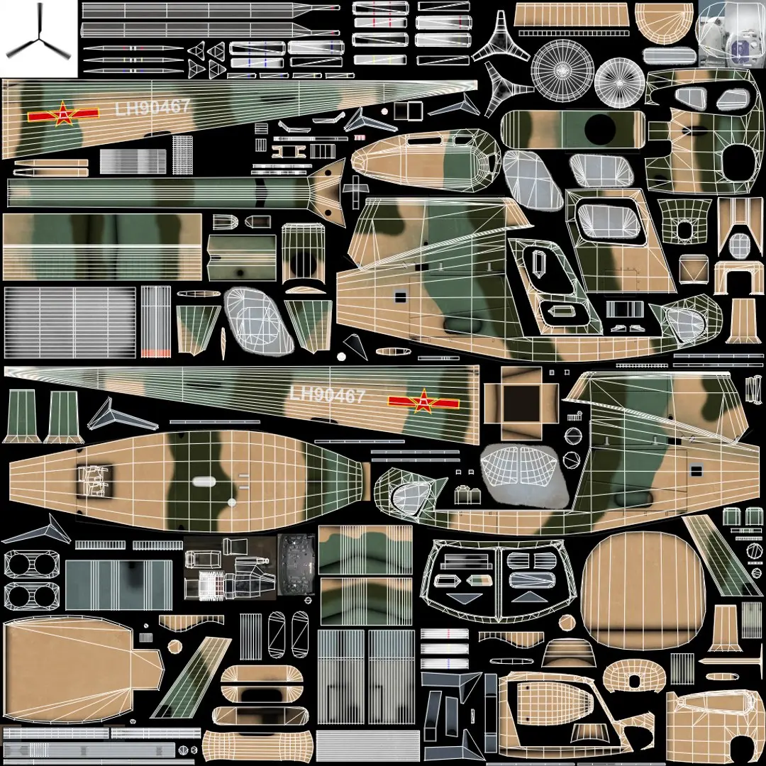 Single 4096x4096 diffuse texture map, plus similar sized specular maps. Models contains simple interior, plus pilots. Part of a huge related collection available from ES3DStudios.