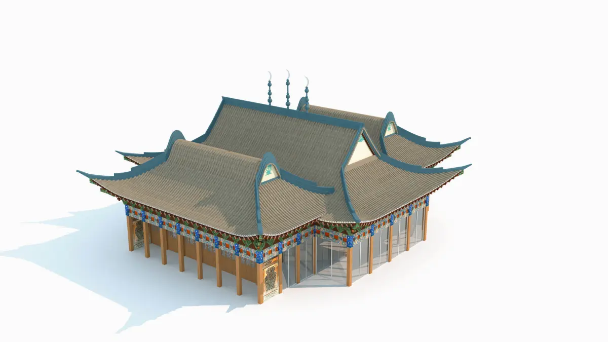 The architectural form and artistic form of Chinese Islamic mosques. It is divided into two major systems: one is the mosque, which is mainly made of wood structure and reflects the traditional Chinese architectural style, and belongs to the unique form of Islamic architecture in China; The second is a mosque that mainly features Arabic architectural style and incorporates certain characteristics of Chinese regions or ethnic groups. The vast majority of existing Chinese mosques were created or rebuilt since the Yuan, Ming, and Qing dynasties. Temples built in the Ming Dynasty already had distinct Chinese characteristics in terms of overall layout, architectural form, architectural decoration, and courtyard treatment. The Qing Dynasty was a period of Islamic development in China, and the unique architectural form of mosques in China was completed at this time.Model making software: 3ds Max 2014 Rendering software: vray3.60.03 for 3dmax2014 If you have any questions, write me: wjjmsn2020@gmail.com .