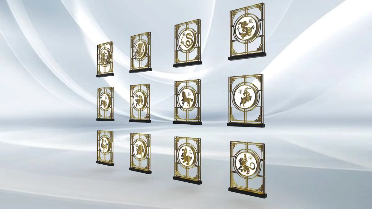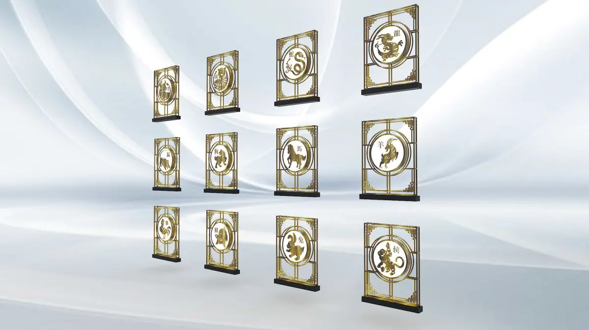 Custom build Chinese New Year 12 Zodiac Static Signage Display stand for exhibition, event, festive decoration. Size: 2338mmH x 1800W x 250D each. Comes with line vector crafted according to the shape of each respective zodiac animal sign.
