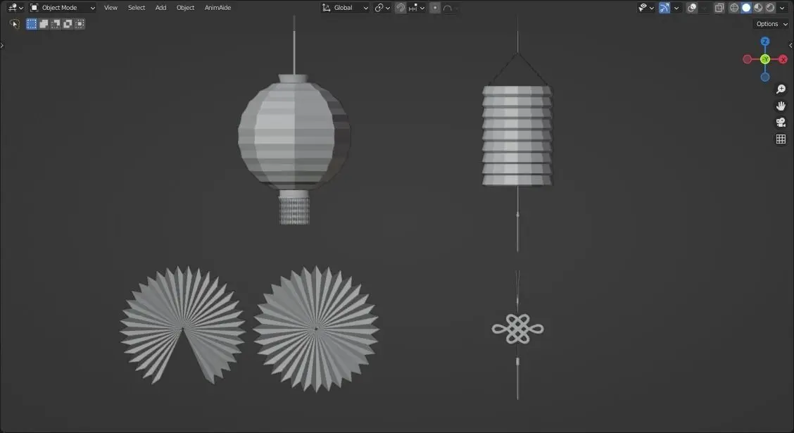 A collection of Chinese New Year decorations. This pack will have 5 models.