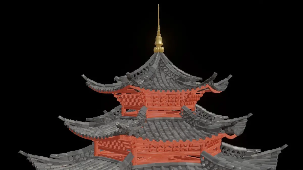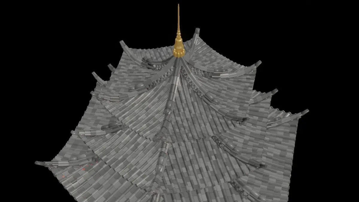 Chinese-style pavilion, generated using geometric node, including brackets, tiles, pillars and other elements