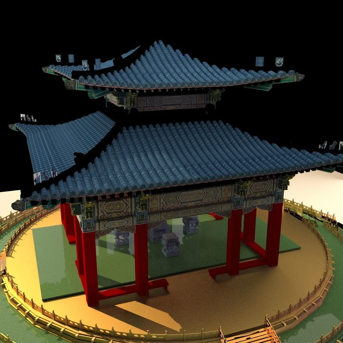 Available files: chinese_ancient_pavilionA zip file3D MaxAutodesk(.FBX)Wavefront(.obj) Sterolithography(.STL) 3D printer format readyImage file(.jpg)Polygons: 351374Vertices: 260977Vray version: 6.10.04