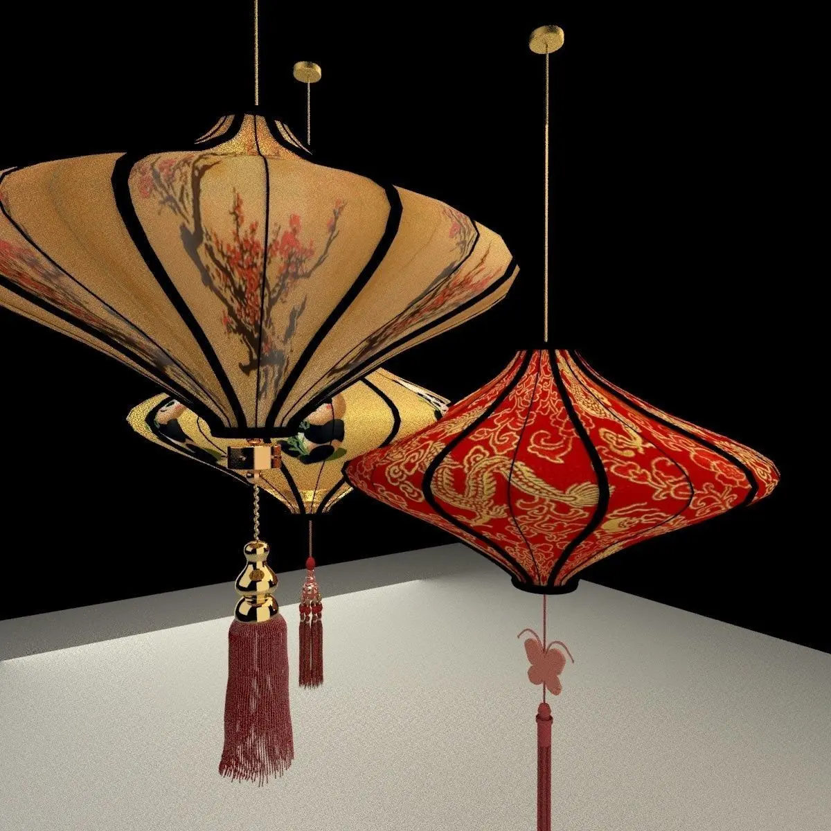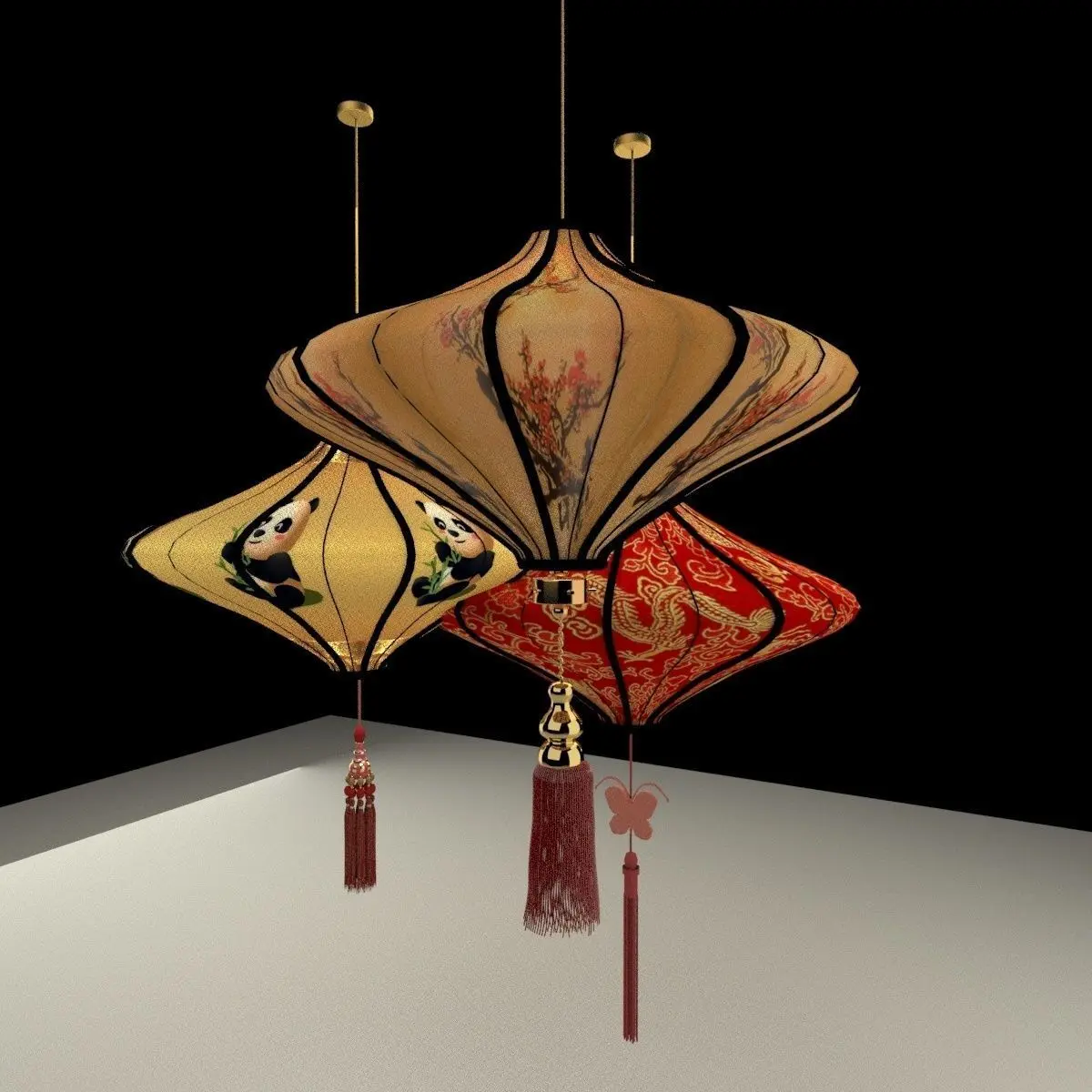 Chinese red lantern 3D models created in 3D Max(.max,.obj) . All scene and texture map are included in Zip file. Final images rendered with Vray.Available files: chinese_special_lanternG.rar3D MaxWavewfront(.OBJ)SteroLithophgraphy(.STL) 3D printer format readyImage file(.jpg).Polygons: 198944Vertices:229724VRay version: 5.20.02