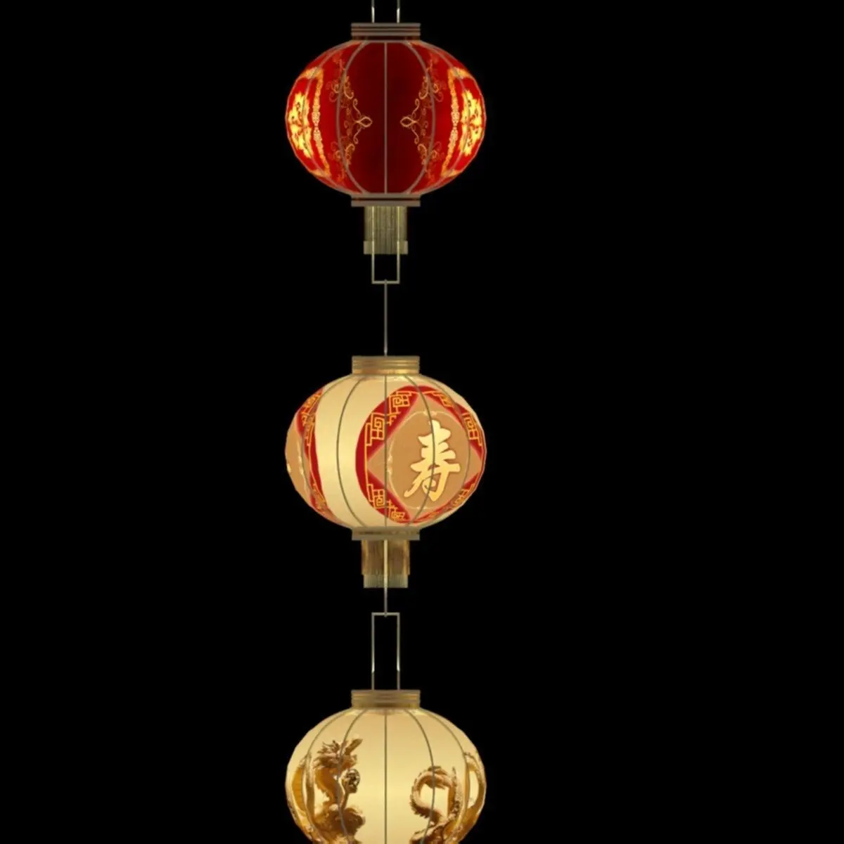 Chinese palace lantern 3D models created in 3D Max (.max,.obj) . All scene and texture map are included in Zip file. Final images rendered with Vray.Available files: three_red_lanternI.rar3D MaxWavewfront(.OBJ)Image file(.jpg)