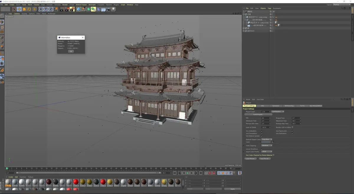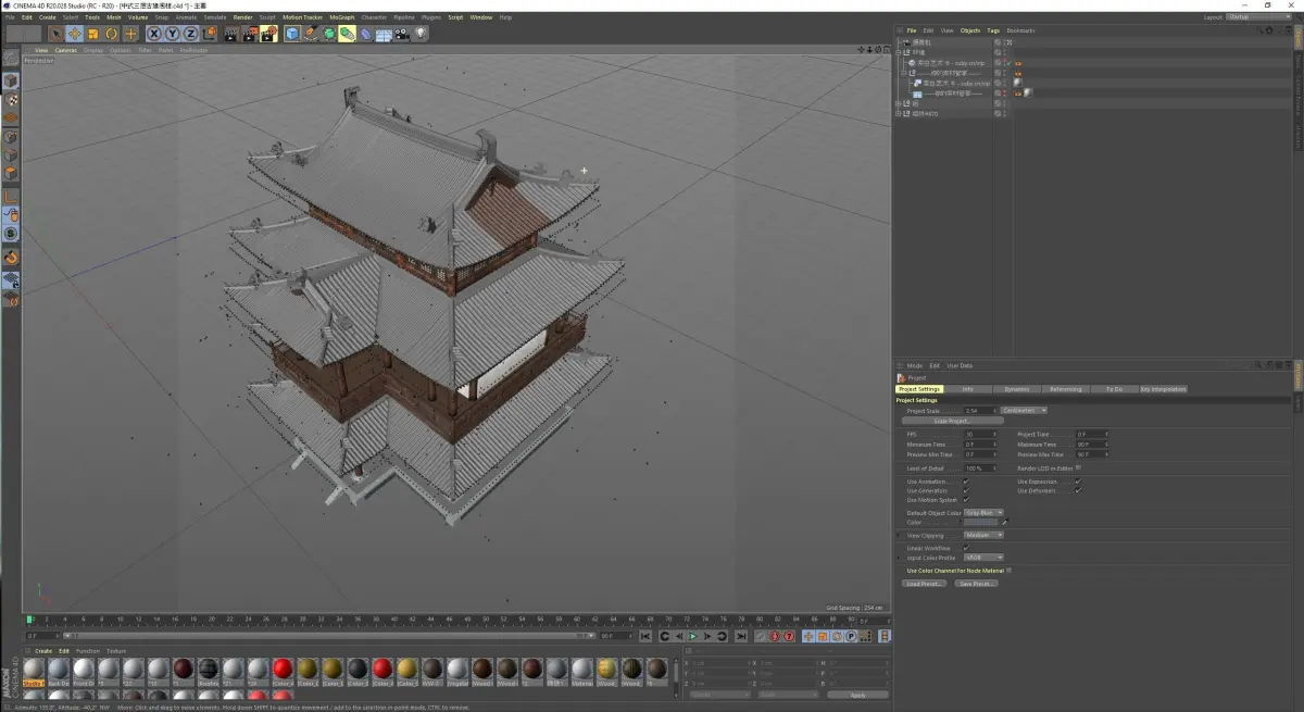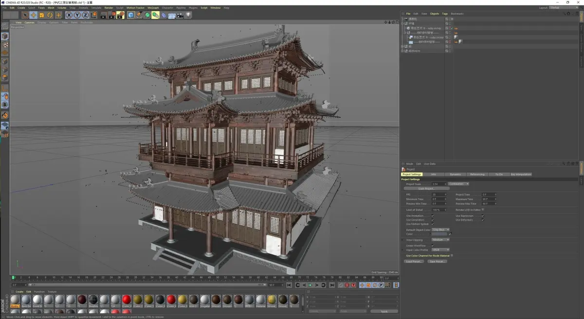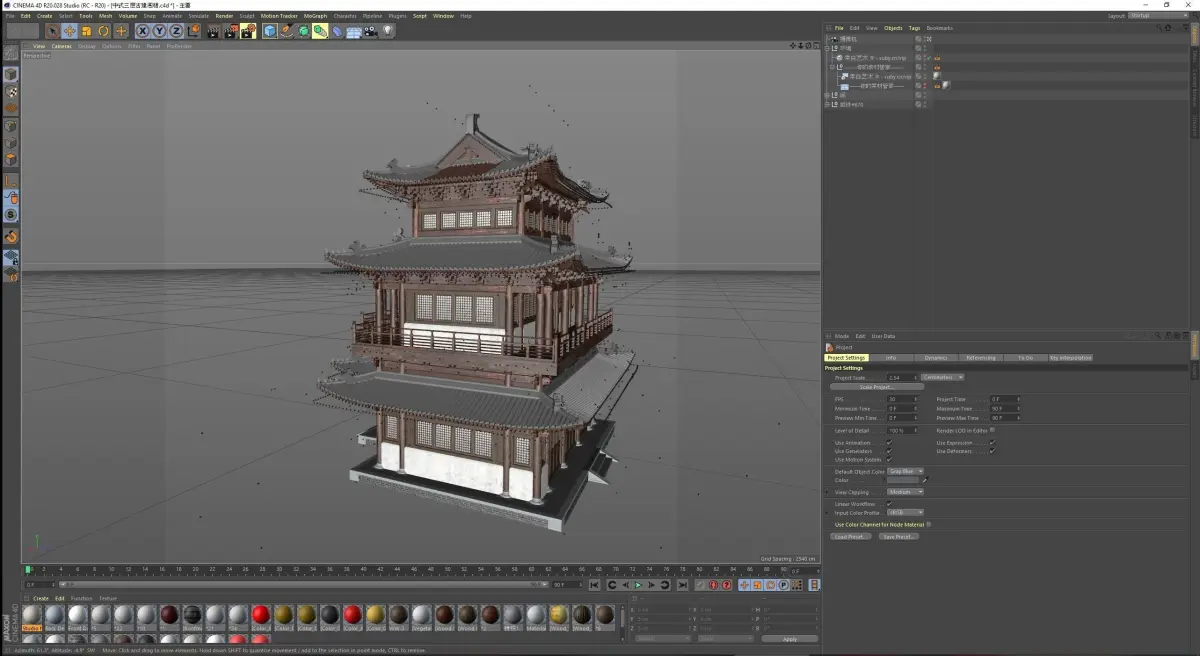 Chinese retro three-story Ming and Qing ancient building 3D model