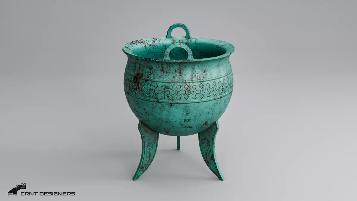 Chinese Ritual Tripod Ding Vessel 3D Model