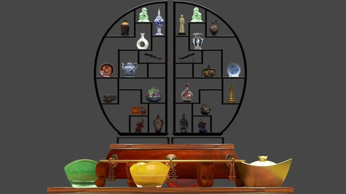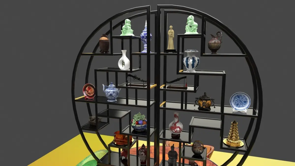 chinese_yuanbao_decorative_shelfA zip file3D MaxAutodesk(.FBX)Image file(.jpg)Polygons: 1631939Vertices: 1526879VRay version: 5.00.04