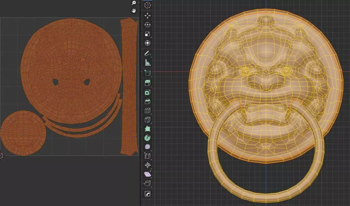 This is a meticulously crafted low - poly 3D model of a traditional Chinese beast head door knocker, created following the PBR (Physically Based Rendering) workflow. The model has 1746 vertices and 1770 faces, making it highly suitable for real - time applications where performance is a concern.It comes with five PBR texture maps:BaseColor.png: Defines the base color and overall appearance of the door knocker.Displacement.png: Adds fine - grained surface details and depth.Metallic.png: Controls the metallic properties, giving the door knocker a realistic brass - like metallic sheen.Normal.png: Enhances surface normals, creating the illusion of more complex geometry and subtle details.Roughness.png: Manages the roughness of the surface, determining how light interacts with and reflects off the door knocker.Application ScenariosGame Development: Perfect for use in ancient Chinese - themed games, whether it's a large - scale MMORPG with ancient cities or a small - scale indie game set in a traditional Chinese courtyard. It can be used to decorate doors in game scenes, adding an authentic touch to the environment.Architectural Visualization: Ideal for virtual tours or 3D visualizations of traditional Chinese architecture, such as ancient mansions, temples, or gardens. It helps in recreating the detailed and ornamental aspects of historical buildings.Film and Animation: Suitable for use in short films or animations with a Chinese cultural theme, where realistic and detailed props are needed to enhance the visual storytelling and cultural authenticity.About the Asset BundleThis model is part of a larger Chinese - style door knocker asset bundle that will include a total of 9 unique door knockers — 5 featuring beast head designs (like this one) and 4 with simpler, elegant traditional patterns. Stay tuned for the complete bundle, or collect these intricately designed door knockers individually as they release!