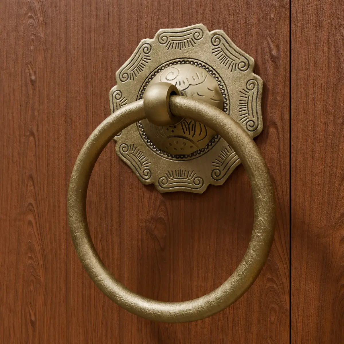 This is an elaborately crafted low-poly 3D model that depicts a traditional Chinese vintage door knocker, created following the PBR (Physically Based Rendering) workflow. The model has 1030 vertices and 1046 faces, making it highly suitable for real - time applications where performance is a concern.It comes with five PBR texture maps:BaseColor.png: Defines the base color and overall appearance of the door knocker.Displacement.png: Adds fine - grained surface details and depth.Metallic.png: Controls the metallic properties, giving the door knocker a realistic brass - like metallic sheen.Normal.png: Enhances surface normals, creating the illusion of more complex geometry and subtle details.Roughness.png: Manages the roughness of the surface, determining how light interacts with and reflects off the door knocker.Application ScenariosGame Development: Perfect for use in ancient Chinese - themed games, whether it's a large - scale MMORPG with ancient cities or a small - scale indie game set in a traditional Chinese courtyard. It can be used to decorate doors in game scenes, adding an authentic touch to the environment.Architectural Visualization: Ideal for virtual tours or 3D visualizations of traditional Chinese architecture, such as ancient mansions, temples, or gardens. It helps in recreating the detailed and ornamental aspects of historical buildings.Film and Animation: Suitable for use in short films or animations with a Chinese cultural theme, where realistic and detailed props are needed to enhance the visual storytelling and cultural authenticity.About the Asset BundleThis model is part of a larger Chinese - style door knocker asset bundle that will include a total of 9 unique door knockers — 5 featuring beast head designs and 4 with simpler, elegant traditional patterns (like this one), Stay tuned for the complete bundle, or collect these intricately designed door knockers individually as they release!
