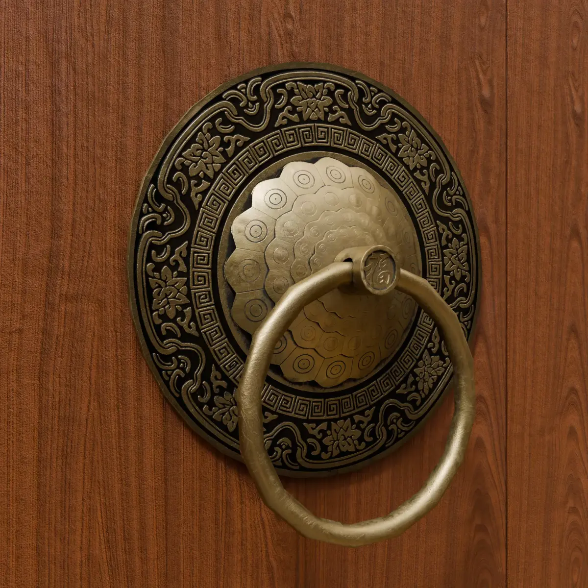 This is an elaborately crafted low-poly 3D model that depicts a traditional Chinese vintage door knocker, created following the PBR (Physically Based Rendering) workflow. The model has 3062 vertices and 3076 faces, making it highly suitable for real - time applications where performance is a concern.It comes with five PBR texture maps:BaseColor.png: Defines the base color and overall appearance of the door knocker.Displacement.png: Adds fine - grained surface details and depth.Metallic.png: Controls the metallic properties, giving the door knocker a realistic brass - like metallic sheen.Normal.png: Enhances surface normals, creating the illusion of more complex geometry and subtle details.Roughness.png: Manages the roughness of the surface, determining how light interacts with and reflects off the door knocker.Application ScenariosGame Development: Perfect for use in ancient Chinese - themed games, whether it's a large - scale MMORPG with ancient cities or a small - scale indie game set in a traditional Chinese courtyard. It can be used to decorate doors in game scenes, adding an authentic touch to the environment.Architectural Visualization: Ideal for virtual tours or 3D visualizations of traditional Chinese architecture, such as ancient mansions, temples, or gardens. It helps in recreating the detailed and ornamental aspects of historical buildings.Film and Animation: Suitable for use in short films or animations with a Chinese cultural theme, where realistic and detailed props are needed to enhance the visual storytelling and cultural authenticity.About the Asset BundleThis model is part of a larger Chinese - style door knocker asset bundle that will include a total of 9 unique door knockers — 5 featuring beast head designs and 4 with simpler, elegant traditional patterns (like this one), Stay tuned for the complete bundle, or collect these intricately designed door knockers individually as they release!