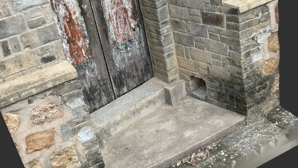 - Chinese style rural house gate. The door. Old fashioned wooden doors. Stone brick walls. 3d scan the gate.