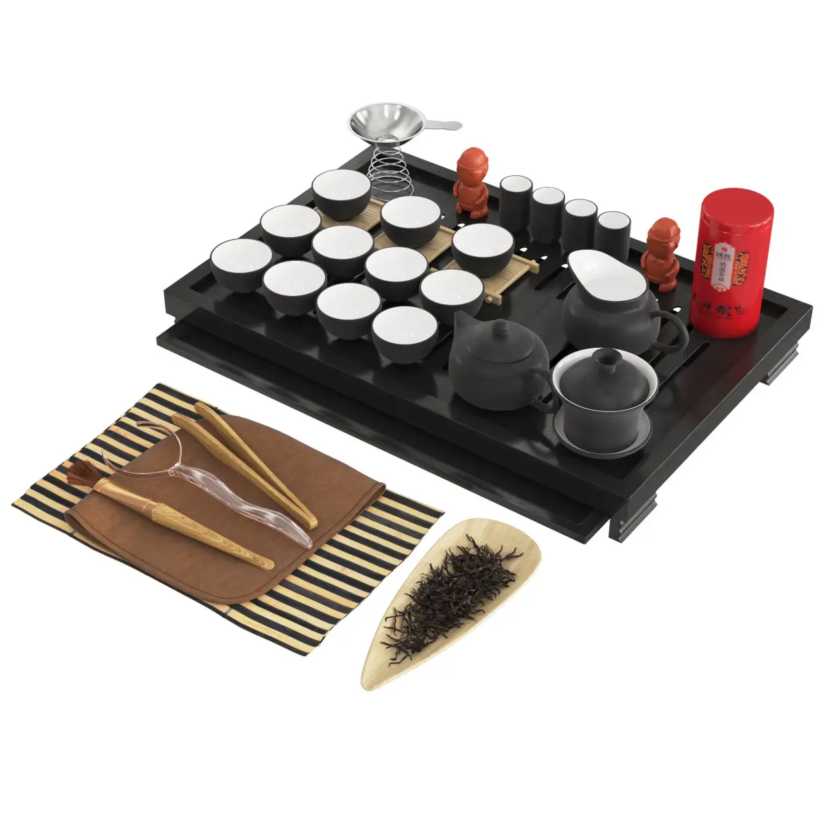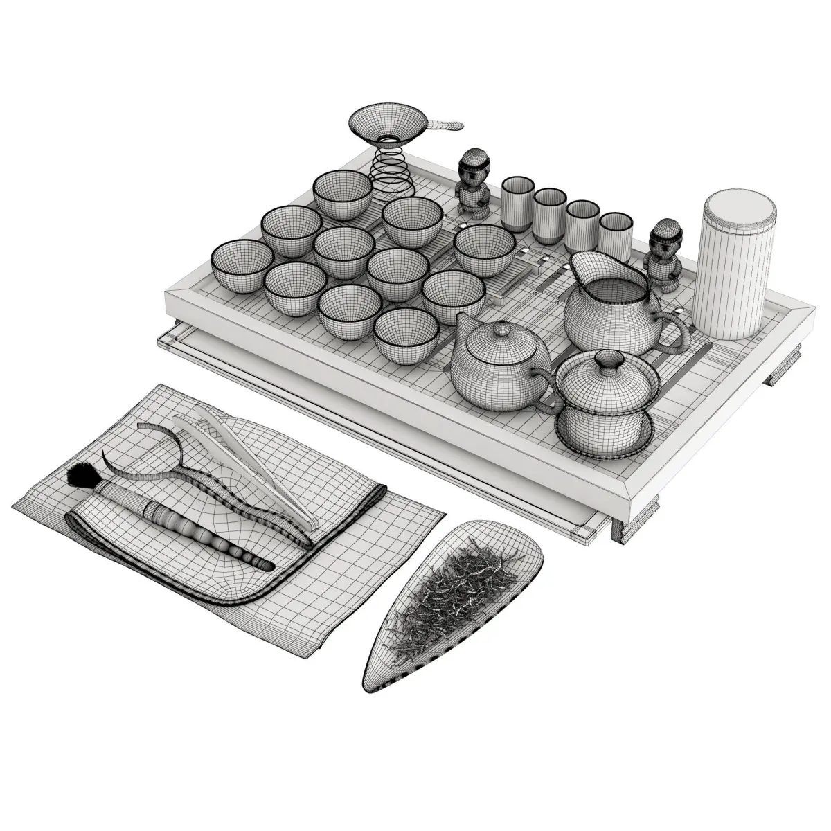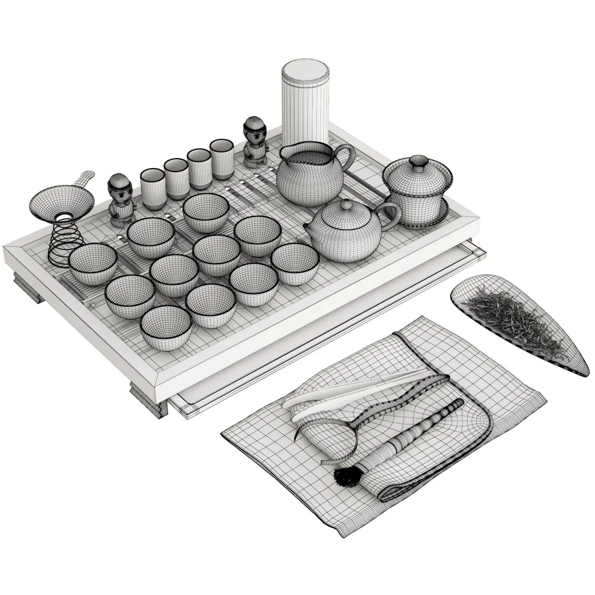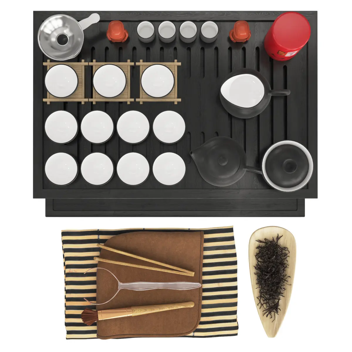 A large set for a tea ceremony.Tea ceremony table, dishes and accessories.