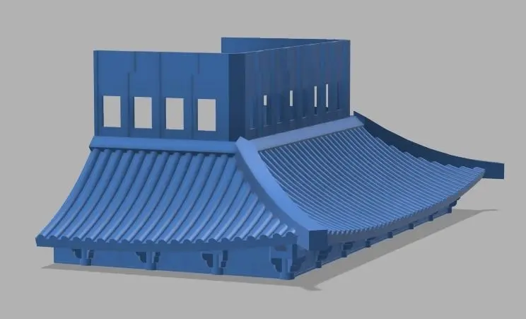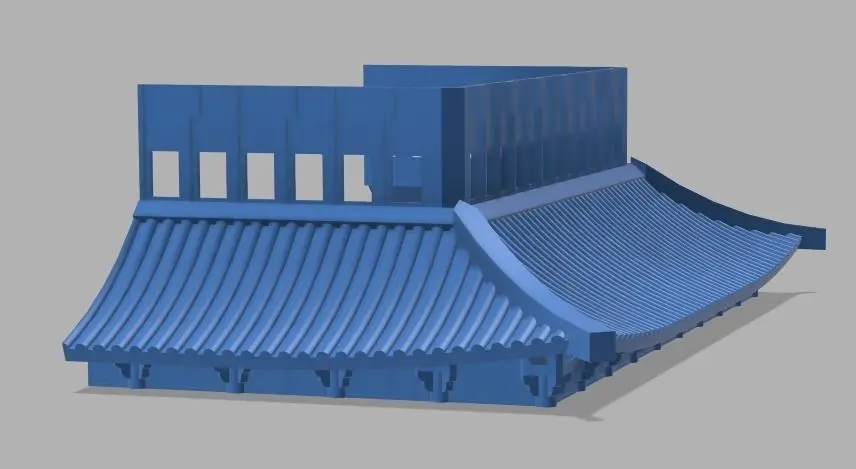 It is designed to be printed in 10 prints (Core1R and Core1L, and then Roof1, Roof2, and Roof3 twice each). I recommend rotating each roof section 30-45 degrees inwards (so supports print on the inside) and printing with supports.