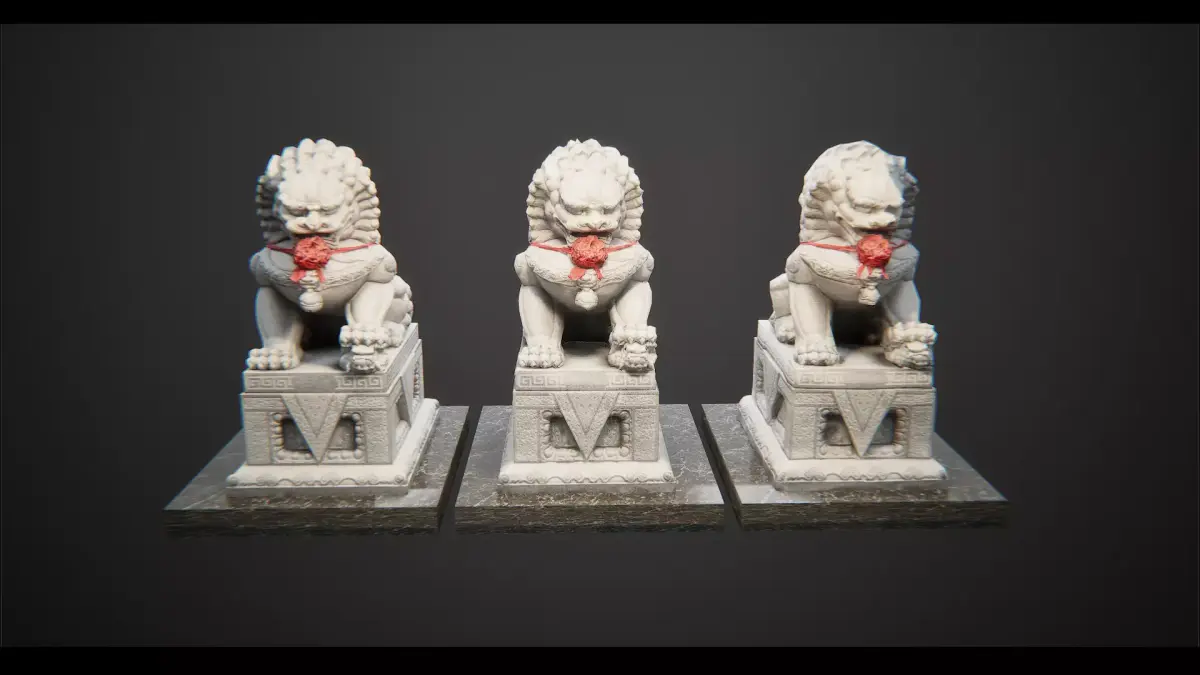 A beautifully crafted Chinese temple stone lion statue, created using 3D scanning technology.
