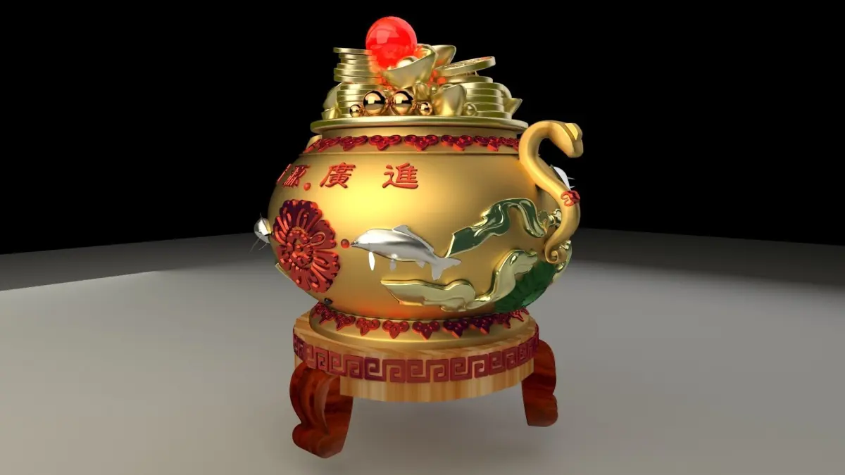 Chinese gold Ingot(Yuan Bao) pot 3D models created in 3D Max. All scene and texture map are included in Zip file. All scene are rendered by VRay version 3.00.07.Available files: chinese_yuanbao_treasure_bowlA zip file