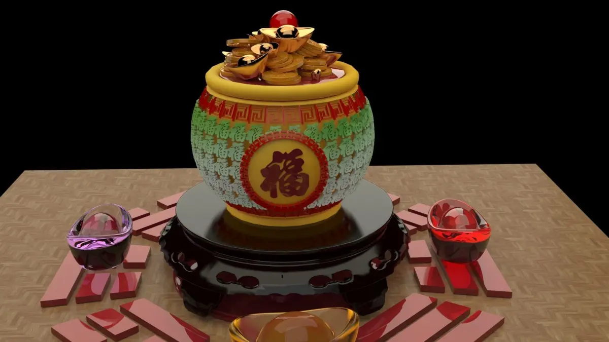 Chinese treasure pot 3D models created in 3D Max. All scene and texture map are included in Zip file. All scene are rendered by VRay.Available files: chinese_yuanbao_potE zip file
