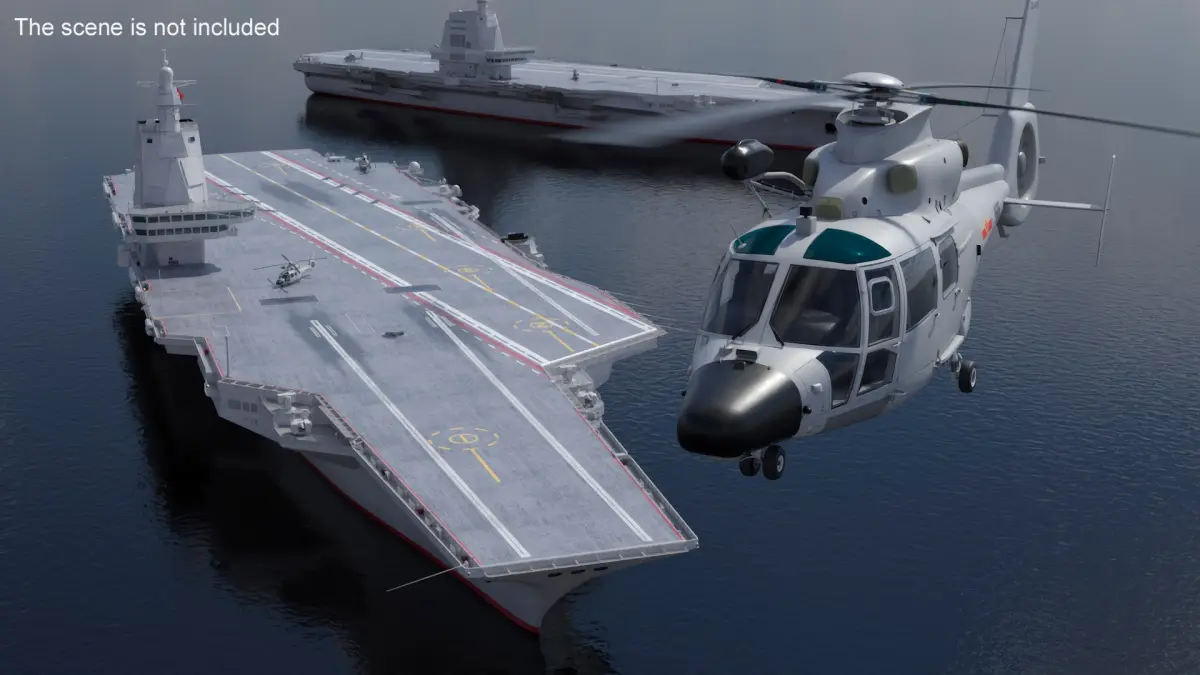 Chinese Type 003 Aircraft Carrier and Harbin Z 9 is a 3d model of aircraft carrier of the People's Liberation Army Navy (PLAN) and medium utility helicopter.
