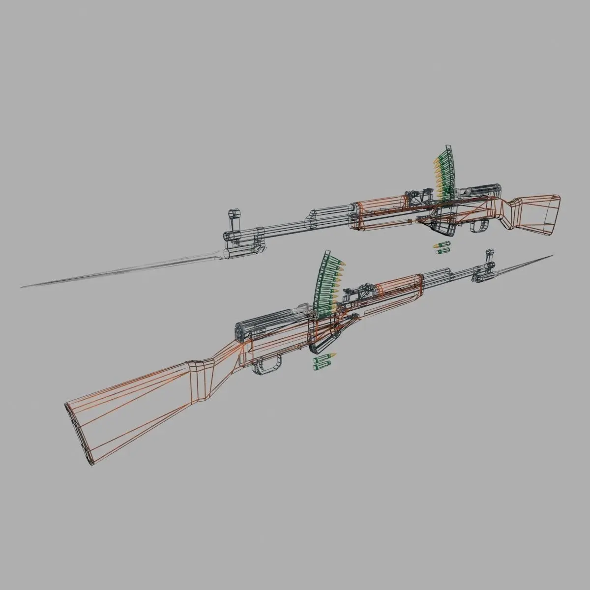 Also come with this model are a 10-round stripper clip, an M43 round, and its empty cartridge case.