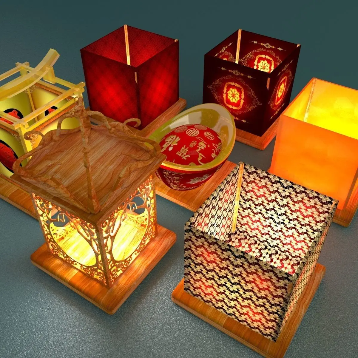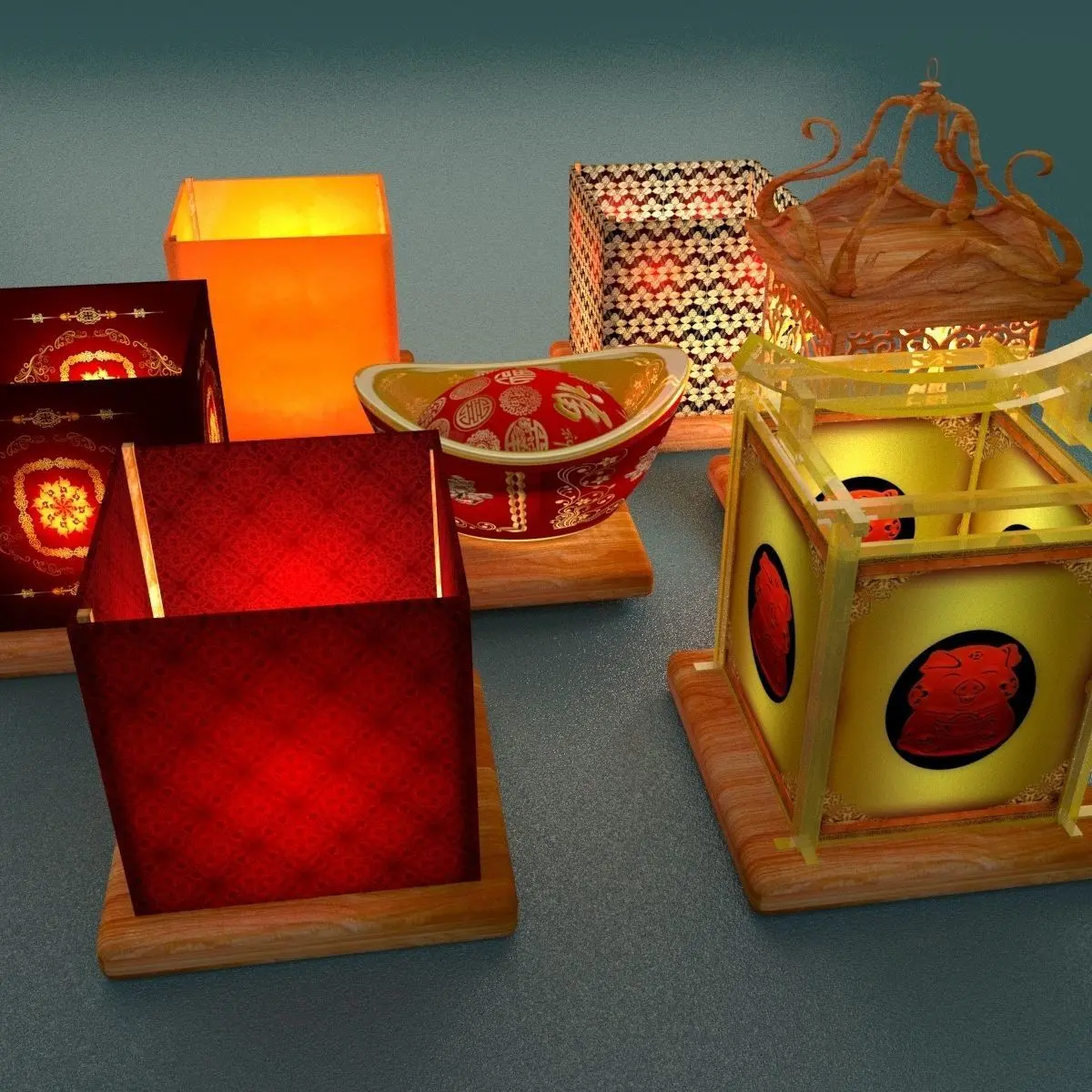Chinese gold Ingot(Yuan Bao) floating lantern and water lantern 3D models created in 3D Max.(.max,.obj) . All scene and texture map are included in Zip file. All scene are rendered by VRay.Available files: chinese_water_lanternC.rar