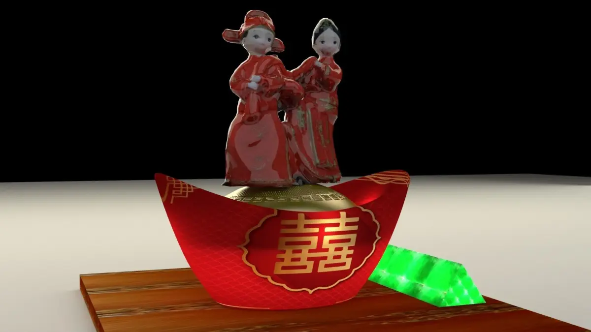 Chinese wedding couple and yuabo 3D models created in 3D Max.(.max,.obj,.stl) . All scene and texture map are included in Zip file. Final images rendered with Vray.Available files: chinese_yuanbao_wedding_coupleA.rar
