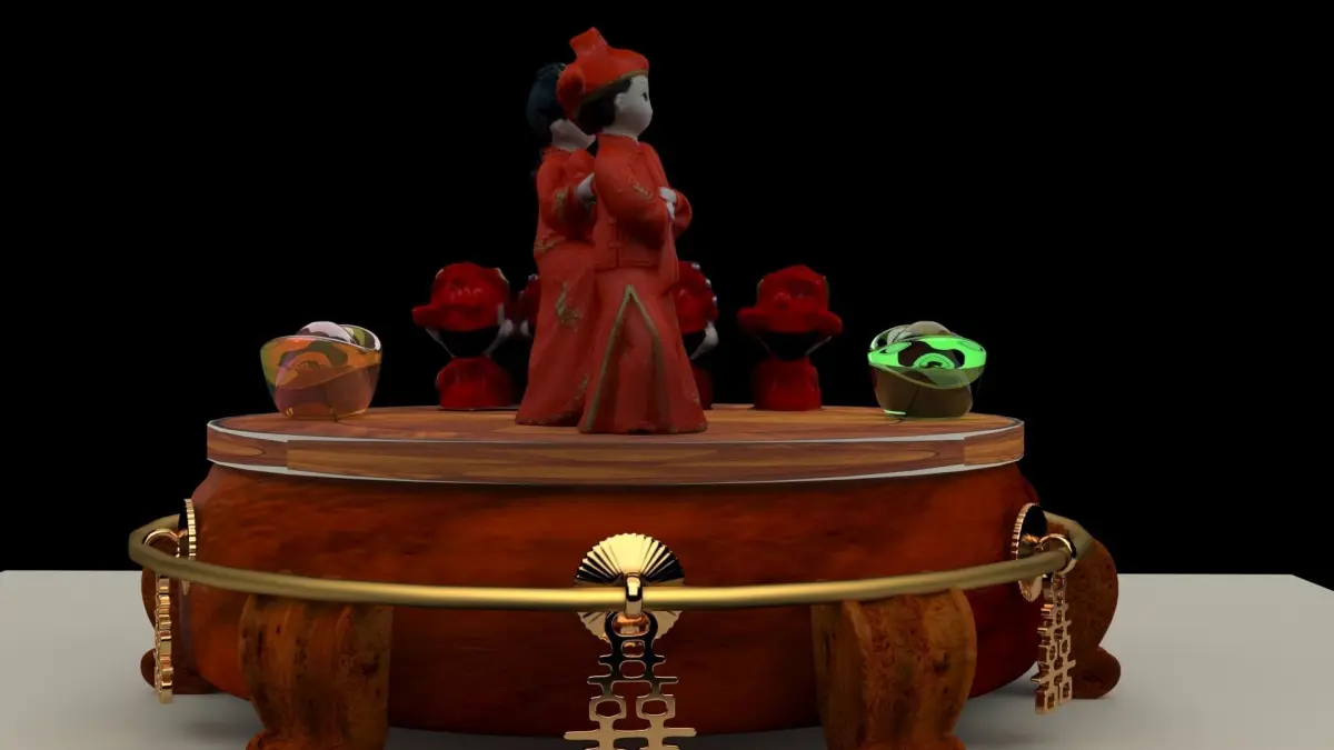 Chinese display stand with wedding couple dolls 3D models created in 3D Max. All scene and texture map are included in Zip file. All scene are rendered by VRay.Available files: chinese_display_stand_wedding_dollsA zip file