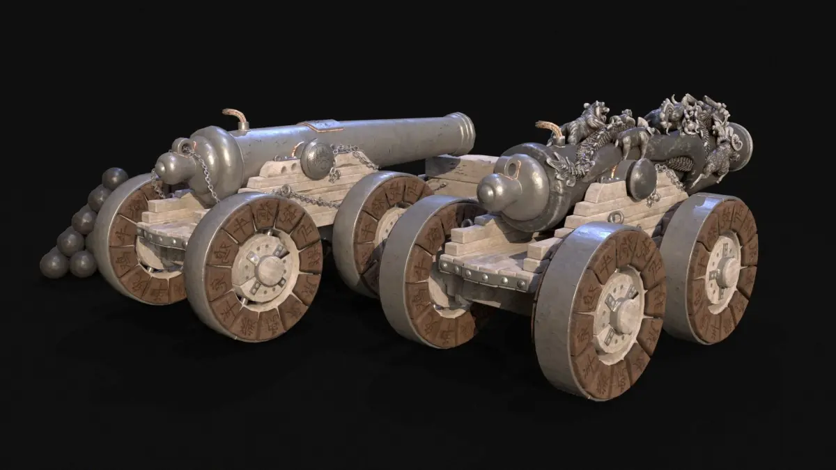 A Cannon with Chinese Zodiac Animals mid poly ready for next-gen games only nanite activated of Unreal Engine 5 it uses trims and some unique textures all textures are assigned PBR PNG format also I included a simple pirate cannon that cannon you can use it without nanite