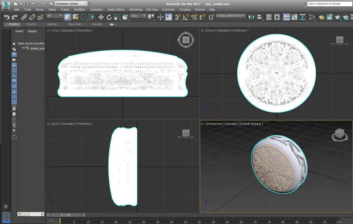 The model is made in SolidWorks 2012. First of all, for creation of playing chip by method of 3D printing.