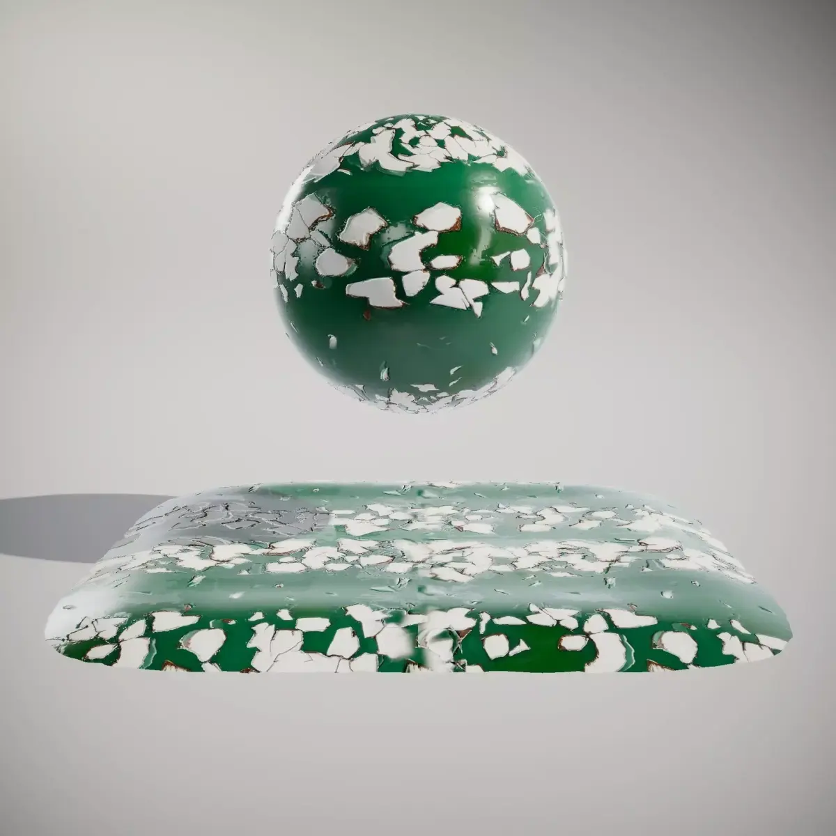 Seamless loop PBR Texture set 4096*4096 px, best for tiling any terrain, wall etc. This texture set features a chipped paint material, characterized by a vibrant green base with white peeling layers. The surface is textured, with both smooth and rough areas due to the paint distress. Ideal for scenes needing realistic urban decay, game environments, or architectural visualization. Textures are seamless/tileable and PBR-ready. Includes BaseColor/Albedo, Normal, Roughness, AmbientOcclusion, and Height/Displacement maps. Resolution 4096x4096 in PNG/JPG formats, compatible with Unreal, Unity, Blender, 3ds Max, Maya. Like and comment if useful.