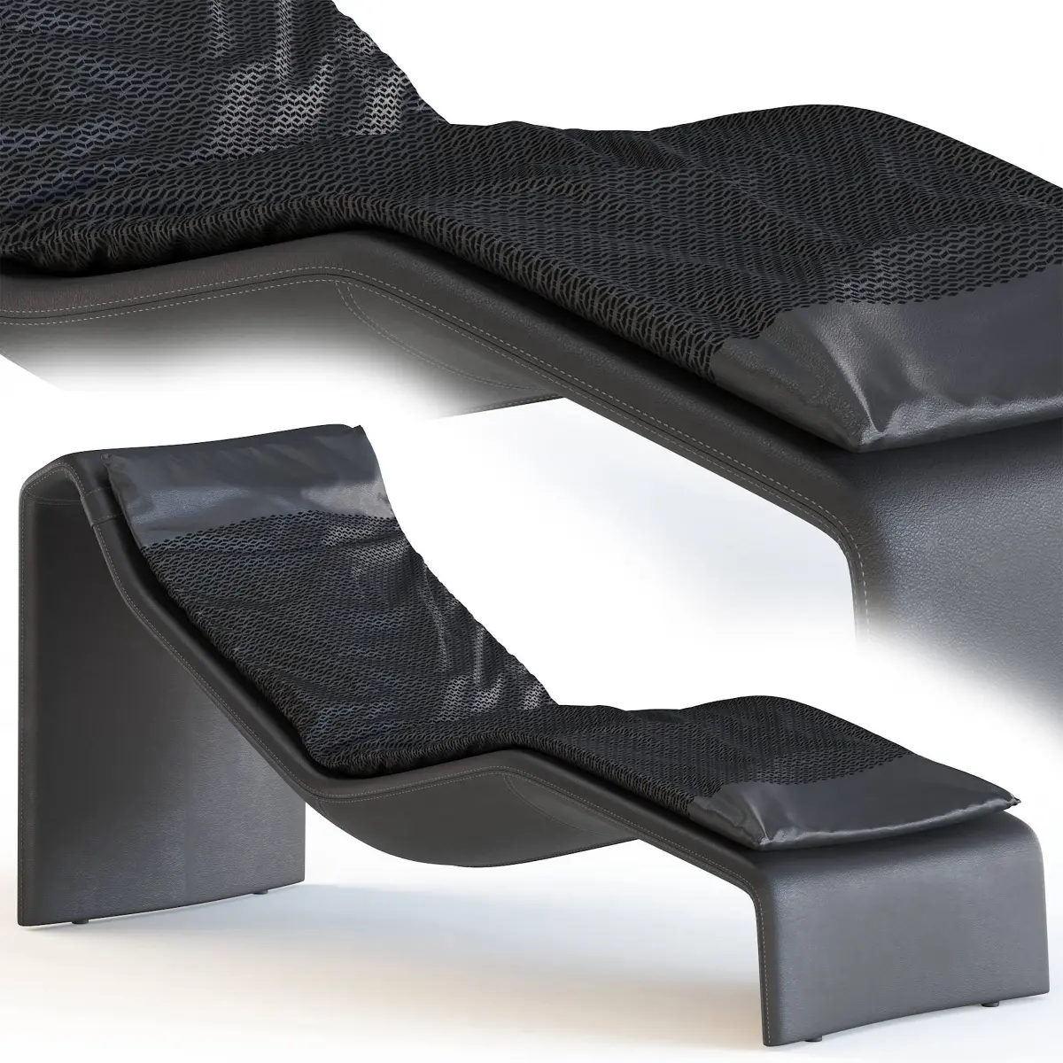 This dormeuse designed by Toan Nguyen show an aerodynamic and apparently suspended line.A chaise longue (/ʃeɪz ˈlɒŋ, tʃeɪz-, -ˈlɒ̃ɡ/;[1] French: [ʃɛz lɔ̃ɡ], long chair) is an upholstered sofa in the shape of a chair that is long enough to support the legs of the sitter.