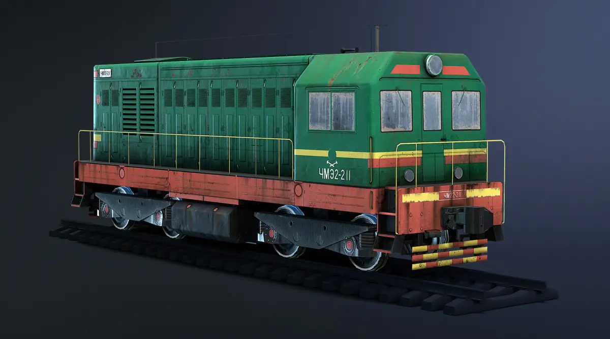 Low-detailed version of game low-poly 3d-model of Czechoslovakian (Soviet / Russian) diesel locomotive ChME2.