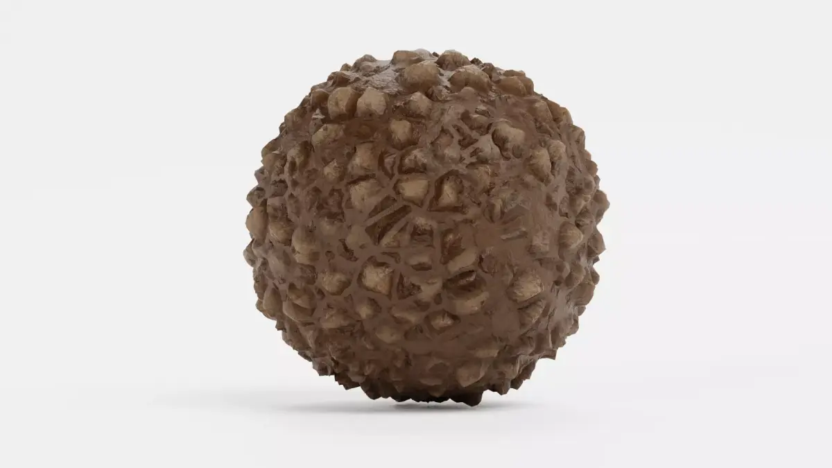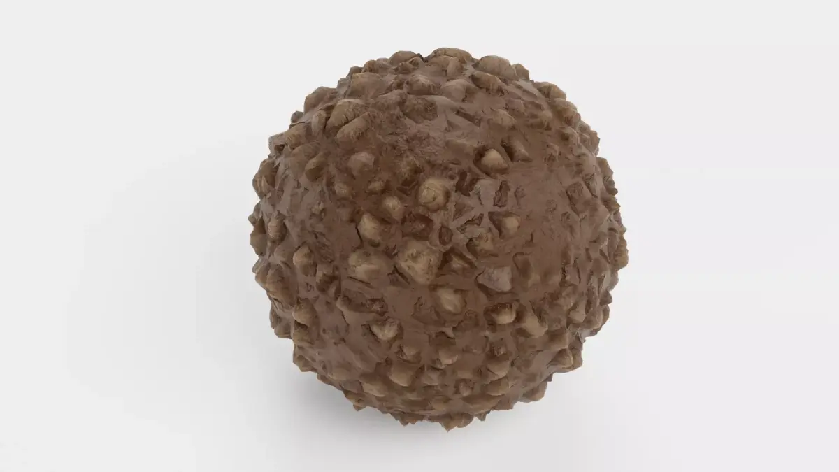 A round chocolate candy with a subtly uneven surface created by tiny nut-like inclusions beneath the chocolate coating. The shape stays spherical, but the fine texture gives it a crisp, realistic character. The model combines clean topology, realistic shading, and refined surface detailing, giving it a premium and believable look. The asset is suitable for anything from branding shots to stylized dessert layouts.