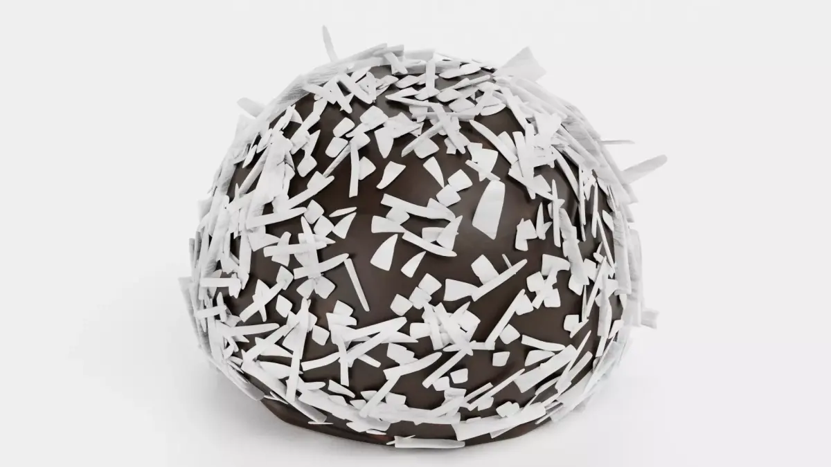 A smooth dome-shaped candy coated in dark chocolate and finished with a light dusting of fine shredded coconut. Simple, elegant, and visually striking in close-up renders. The model combines clean topology, realistic shading, and refined surface detailing, giving it a premium and believable look. The asset is suitable for anything from branding shots to stylized dessert layouts.
