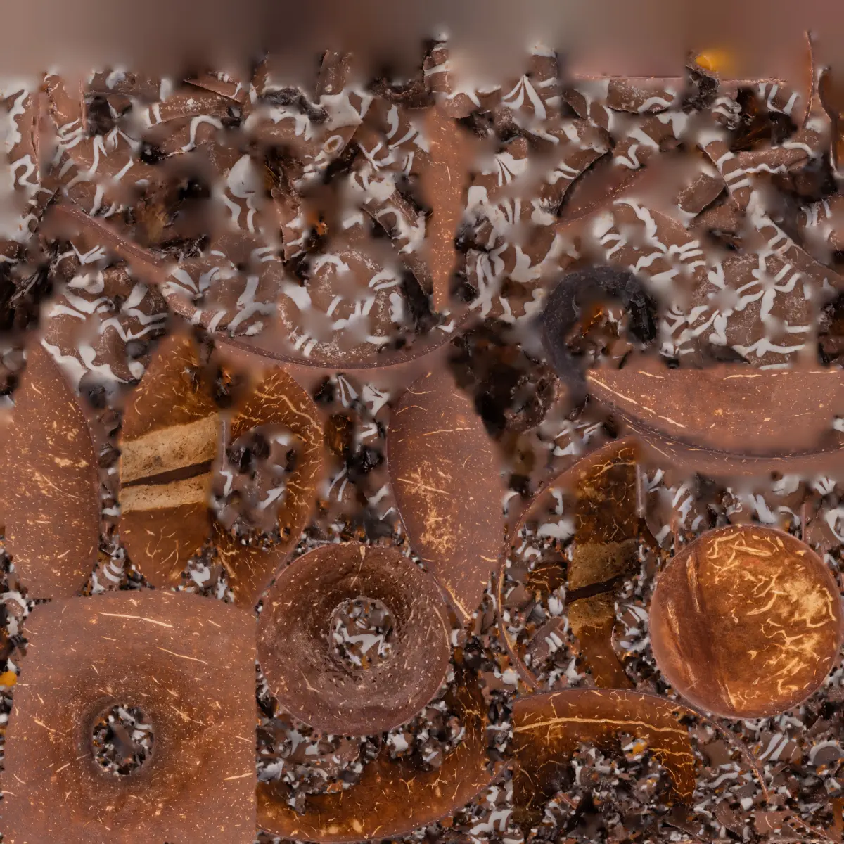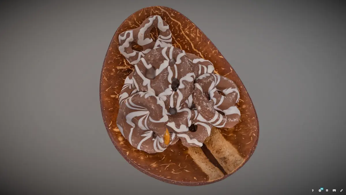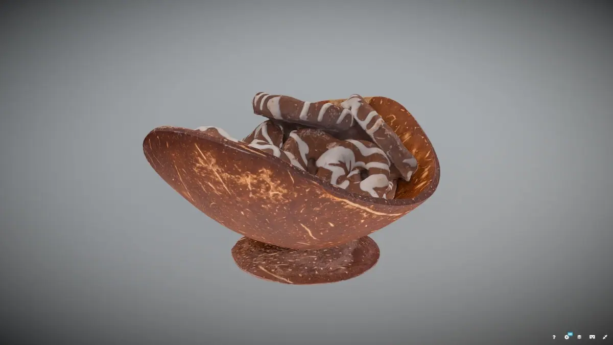 Photo-real, unlit, texturized model of Chocolate Covered Pretzels in Coconut Bowl. This object was generated using photogrammetry with a DSLR camera and images edited in Light Room, compiled in Reality Capture, and re-topologized in Insta-Mesh. The mesh is edited in Agisoft, and model retextured in Reality Capture.