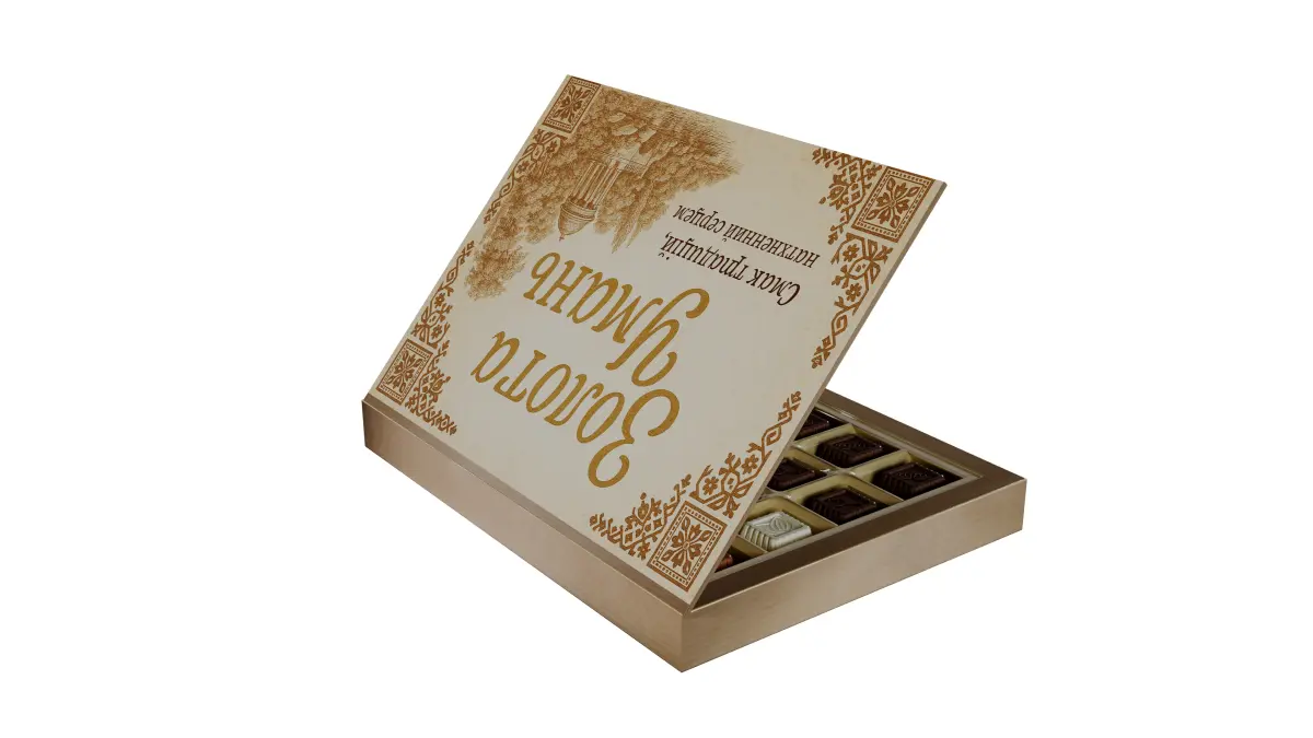 3D model of a luxury chocolate gift box inspired by traditional Ukrainian vintage style.The set includes: