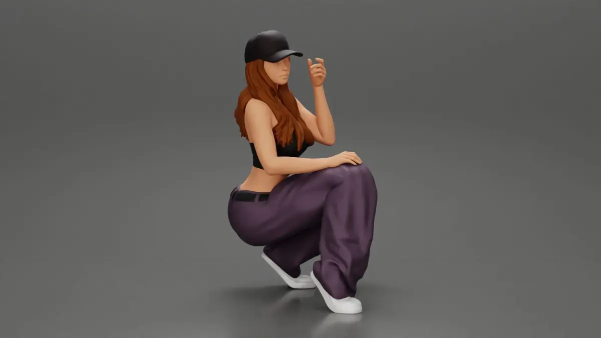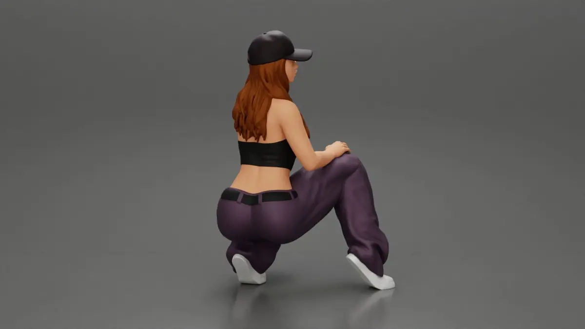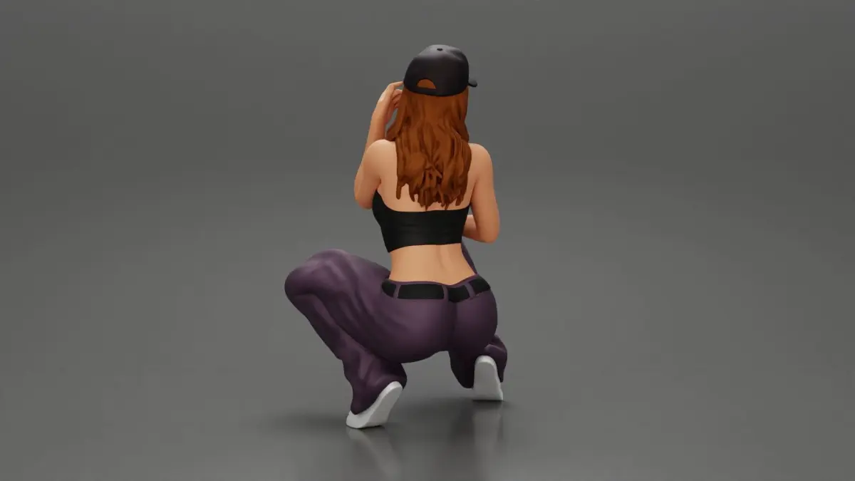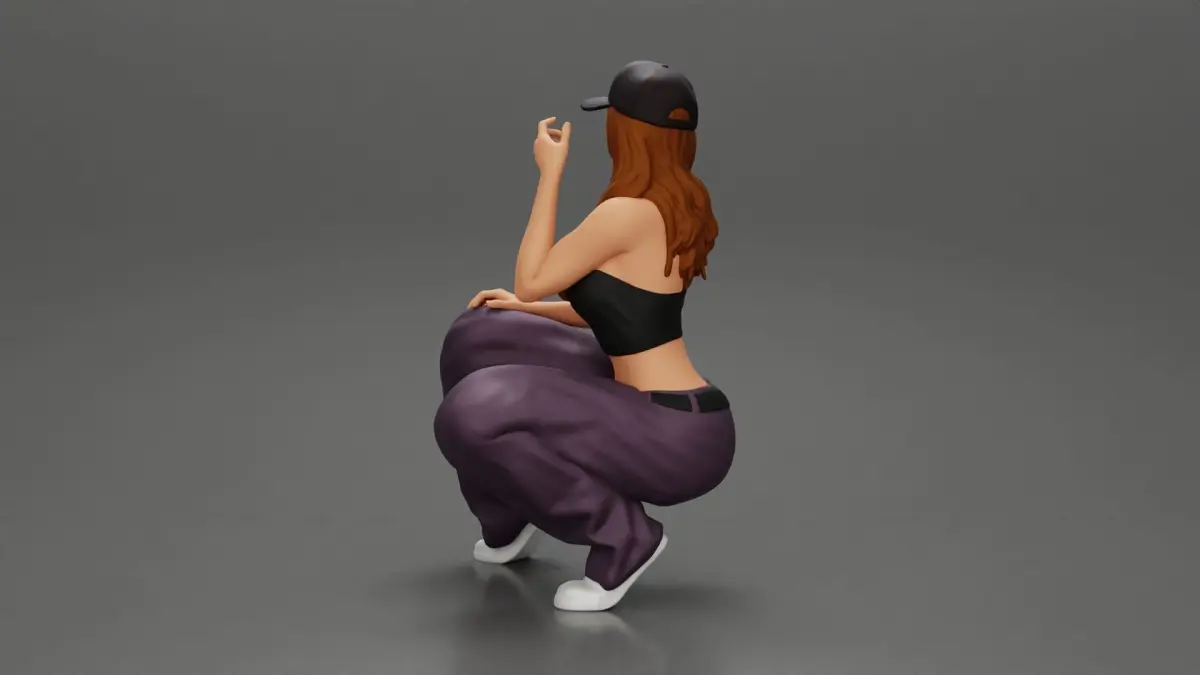 Home Catalog Chola gangster homie lowrider girl in cap sitting beside car 3D print model