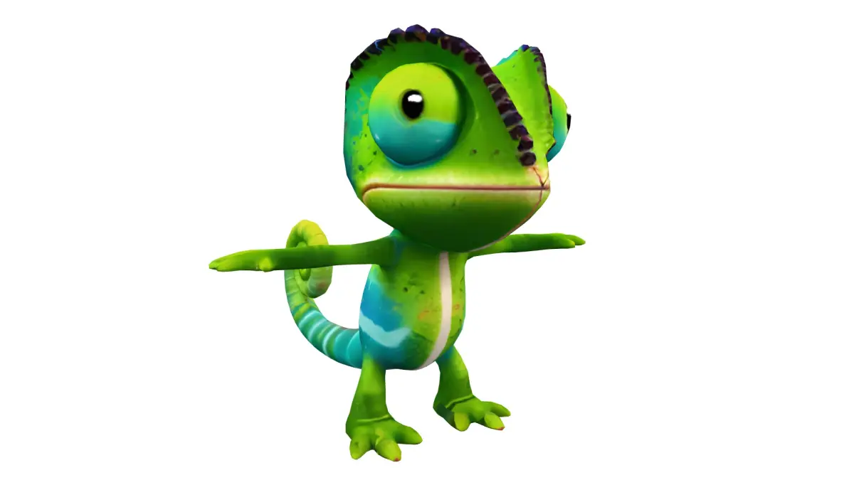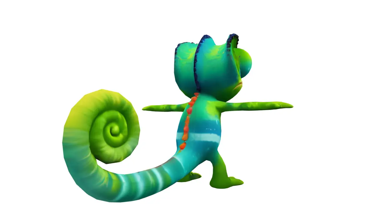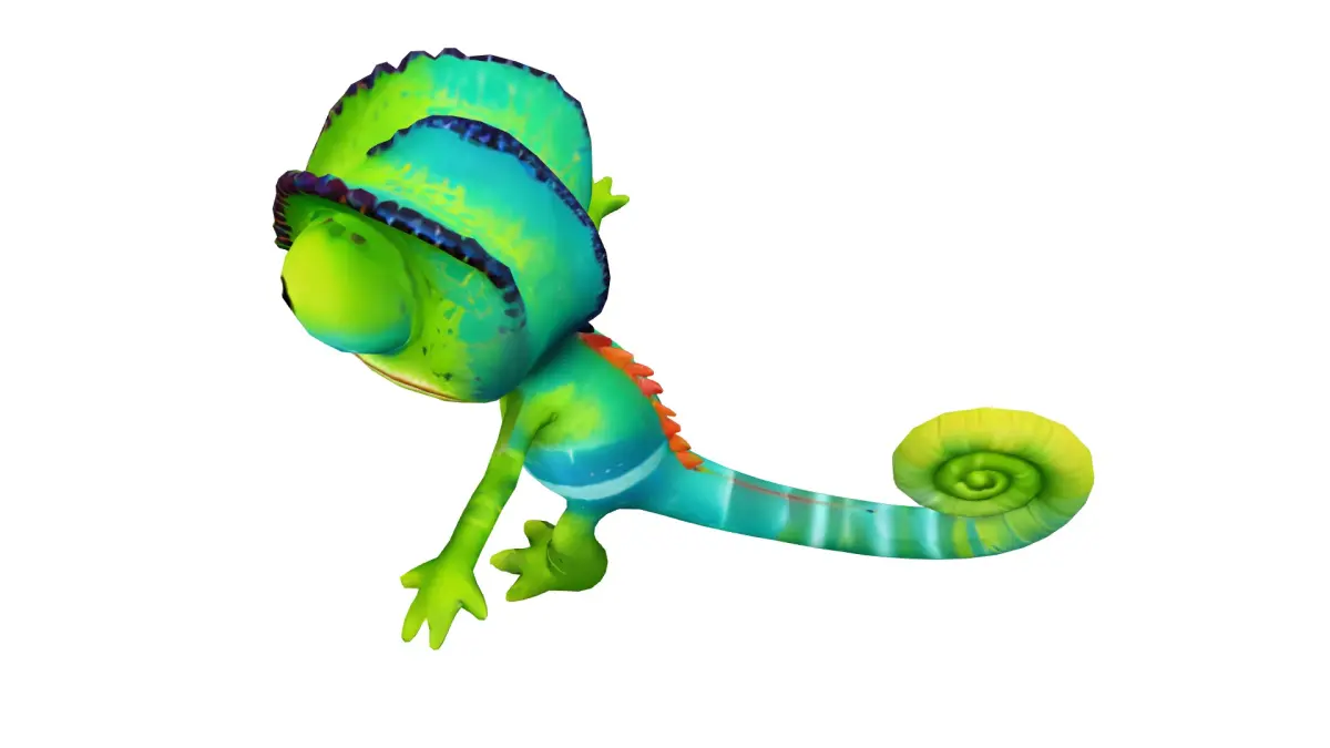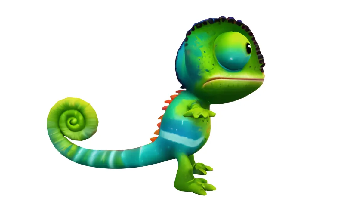 Chompy the Chameleon is a fun, vibrant character full of personality. His striking green and blue skin, large expressive eyes, and cute curled tail give him a playful yet curious demeanor. With his black-and-purple ridged crest running down his head, he has a unique look that makes him stand out from other chameleons. Chompy can change his colors to match his surroundings and loves going on adventures in the jungle, using his long tongue to catch insects. Whether he’s blending into the background or standing out, Chompy is always ready for some fun!