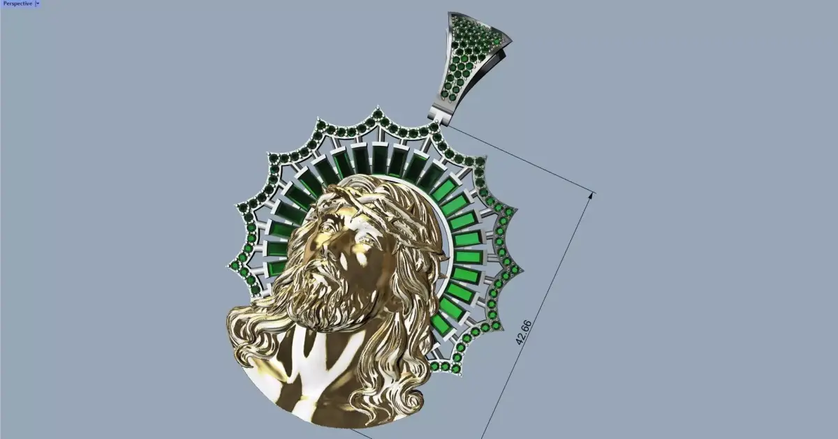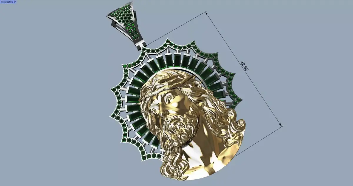 Christ Crown Pendant, initial size 42 mm and weight 25 g in 18k gold, approximately. The design can be scaled to any size you need.