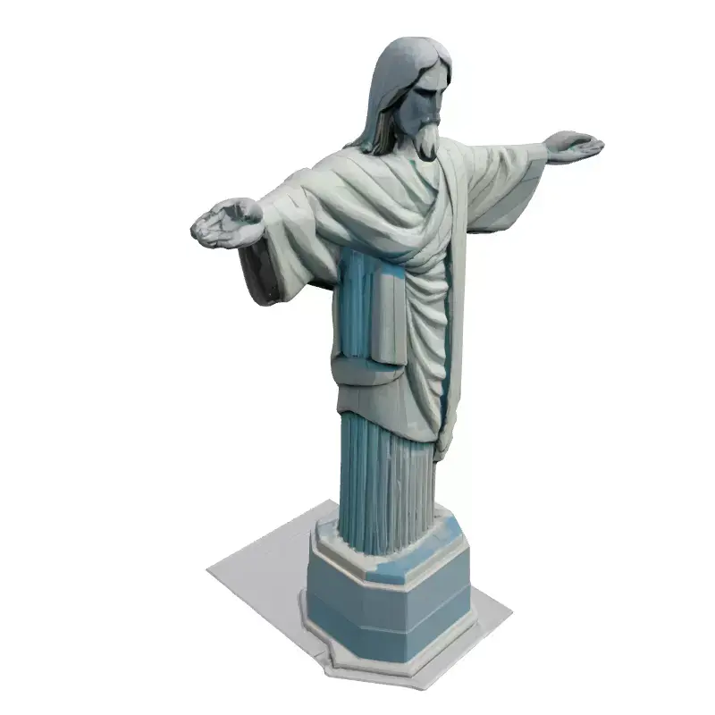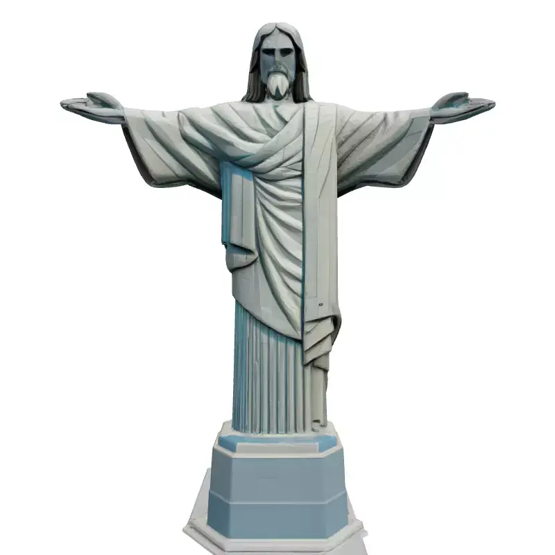 This 3D model represents the iconic Christ the Redeemer statue located in Rio de Janeiro, Brazil. Ideal for various applications, including game development, architectural visualization, AR/VR experiences, and educational projects. This low-poly model is optimized for real-time performance in games and AR, yet retains sufficient detail for visually appealing presentations. Available in multiple formats (GLB, OBJ, FBX, STL), it features clean topology, UV unwrapped meshes, and PBR textures for realistic rendering. The model is ready to be imported into your preferred 3D software and can easily be integrated into diverse scenes. Its low polygon count ensures smooth performance even on less powerful devices. The model is also suitable for 3D printing, allowing you to create a physical replica of this famous landmark. This highly detailed model accurately captures the statue's posture, facial features, and flowing robes. This versatile model offers a great combination of performance and visual fidelity.
