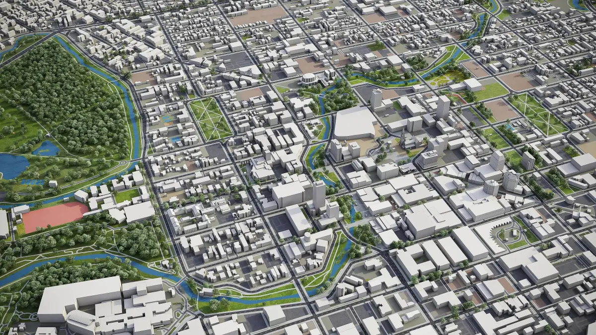 - Full city extents up to 100 x 100 km — or crop to the area of interest for better format compability and scene performance