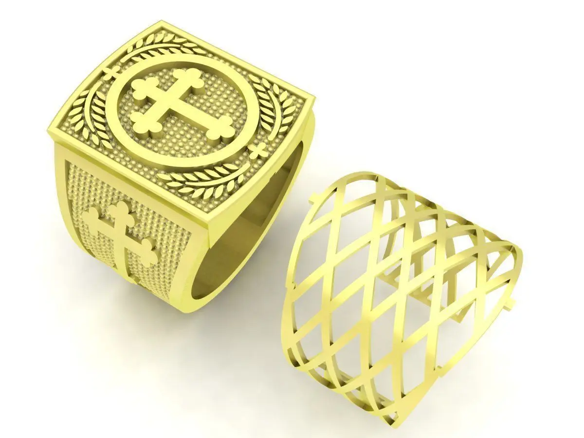 This Christian cross ring is a professional high-quality 3D jewelry model designed with strong religious symbolism and a bold masculine structure. The square top features a raised cross motif surrounded by detailed ornamental patterns, creating a powerful and timeless appearance.