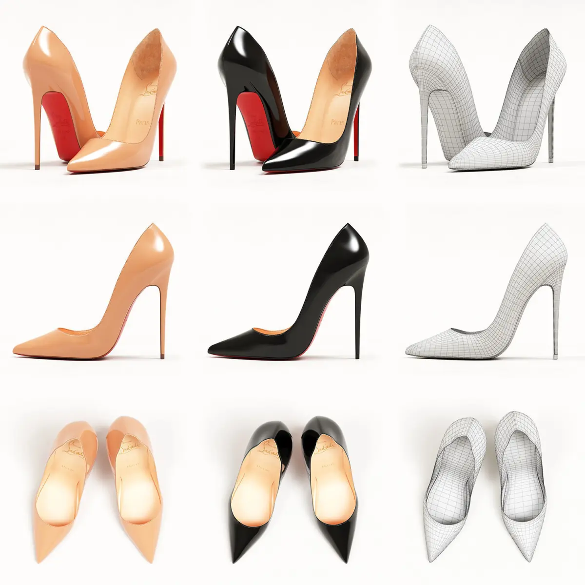 One pair of shoes has 16K polygons and it is enough for most renders, but if super close up renders are needed then you can apply smoothing modifiers for sharper look.