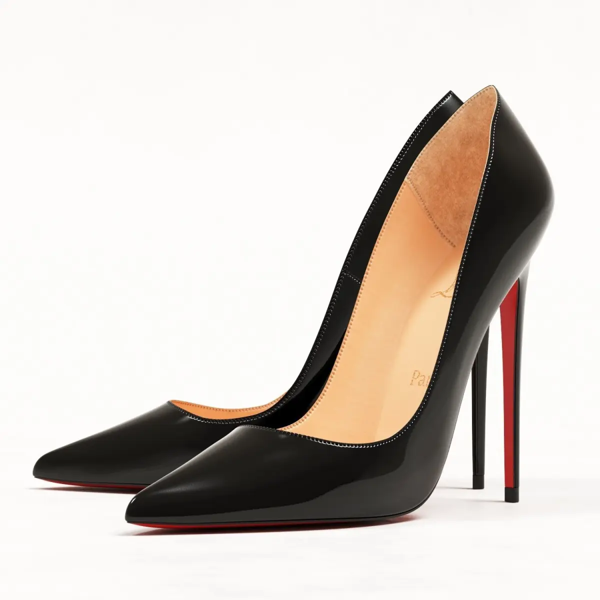 Combining simple elegance with clean lines, the So Kate has become a true icon of Christian’s design repertoire. A curved décolleté gently encases the foot, plunging down to a revealing toe cleavage that ends in a winklepicker point. The sophisticated upper perches atop a towering 120-mm stiletto heel that elongates the leg. This season’s iteration comes in vampish glossy black and nude patent leather, lined with signature red.