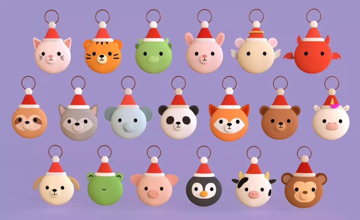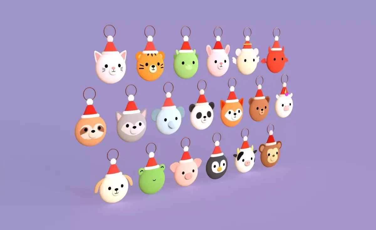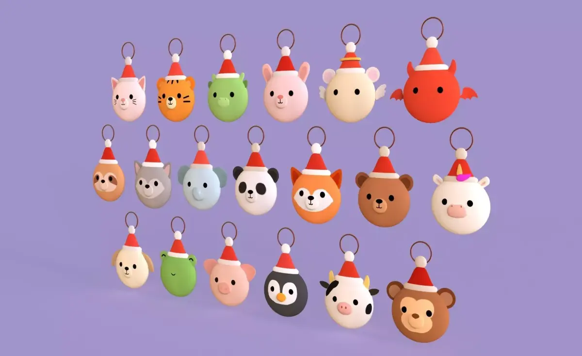 Christmas Animal Wall Hook Set Cute Holiday Decoration 3d model low Poly