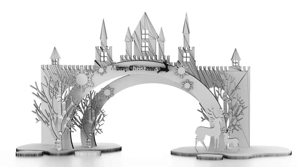Christmas arch for entrance decoration in blue & white (winter) style.