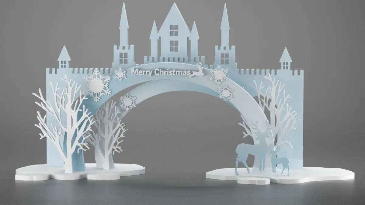 Christmas arch for entrance decoration in blue & white (winter) style.