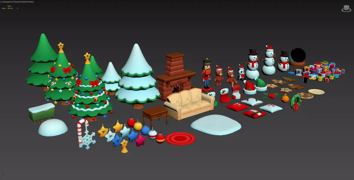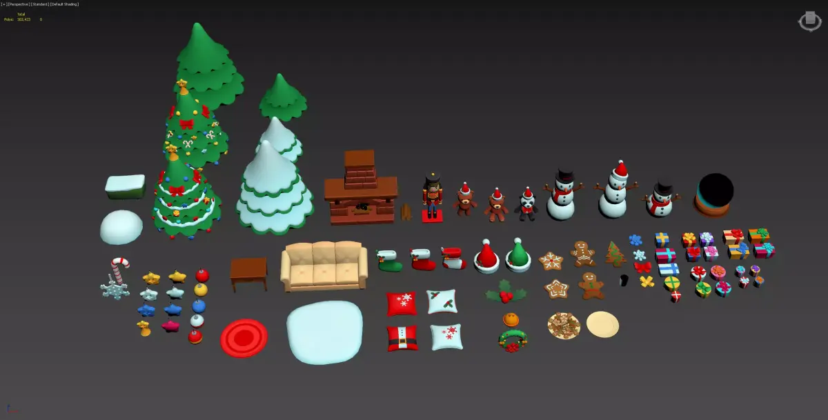 Christmas atmosphere elements tree socks bells cookies candy 3D model