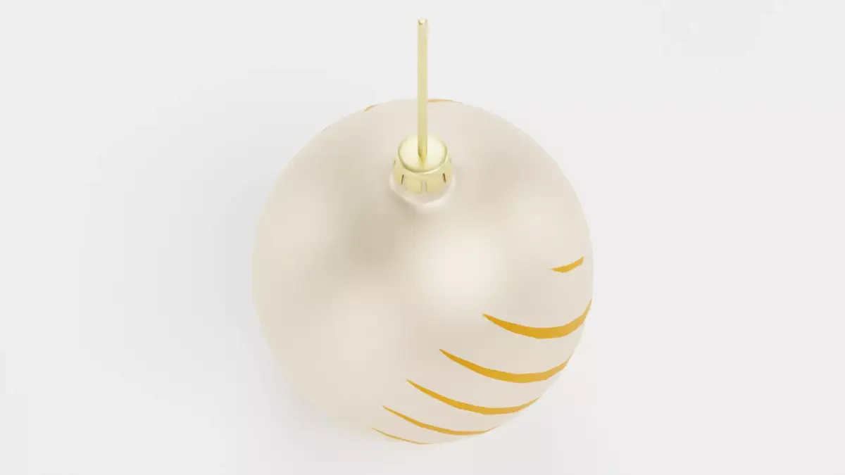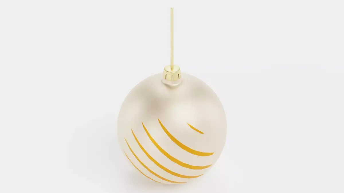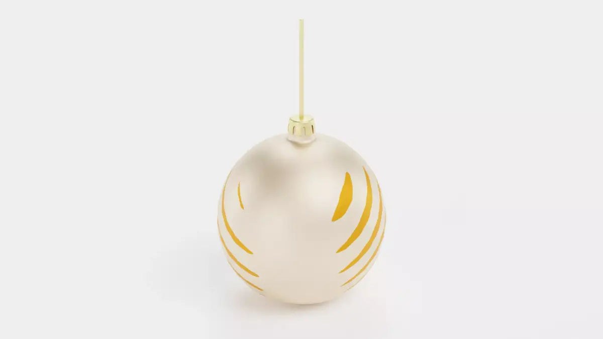 A high-quality 3D model of a classic Christmas ball ornament designed for realistic holiday visualizations and decorative scenes. The model features a smooth spherical surface with metallic cap detail and attached hanging string for a fully authentic appearance. This version presents a subtle silver base color with decorative stripes.