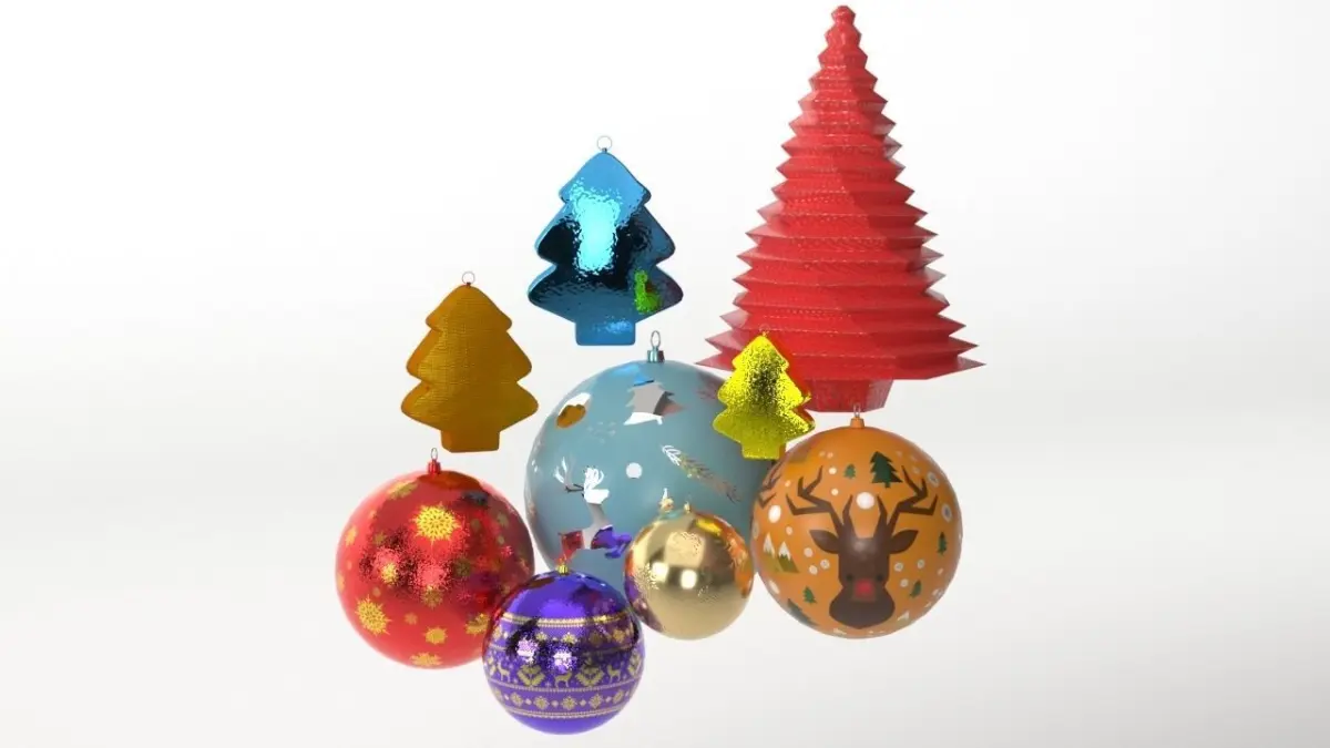 A selection of christmas baubles for the holiday season with various shapes and designs in Low-poly with PBR materials