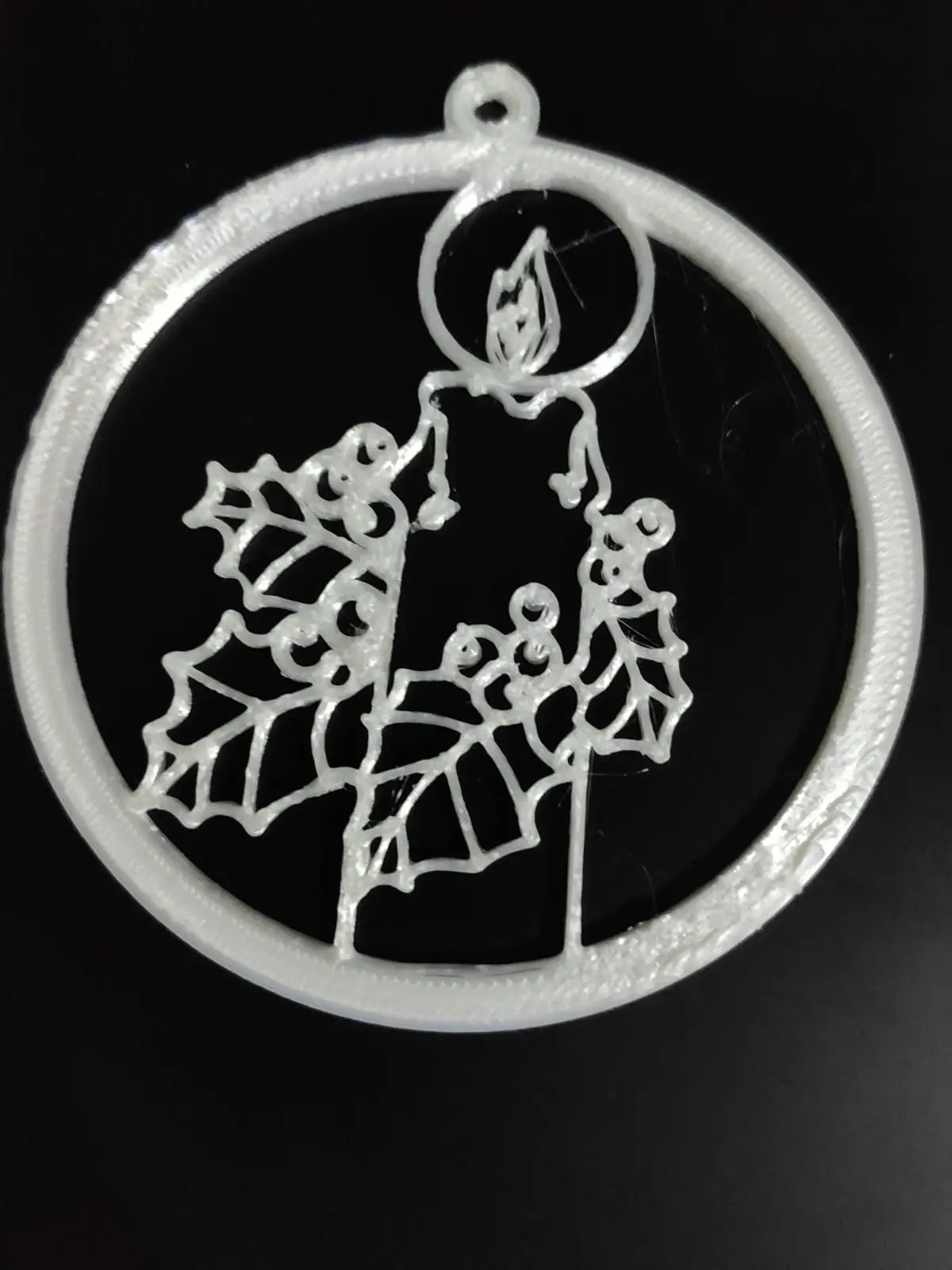 Christmas decorations that can be placed in a Christmas tree or hanged by themselves.You can print them in white or light colored PLA and paint it with acrylic colors. They can be printed at 0 or higher infill (0 works fine).Dimensions: Around 10 cm in diameter by 2mm thick (4 inches by about 1/12th of an inch).
