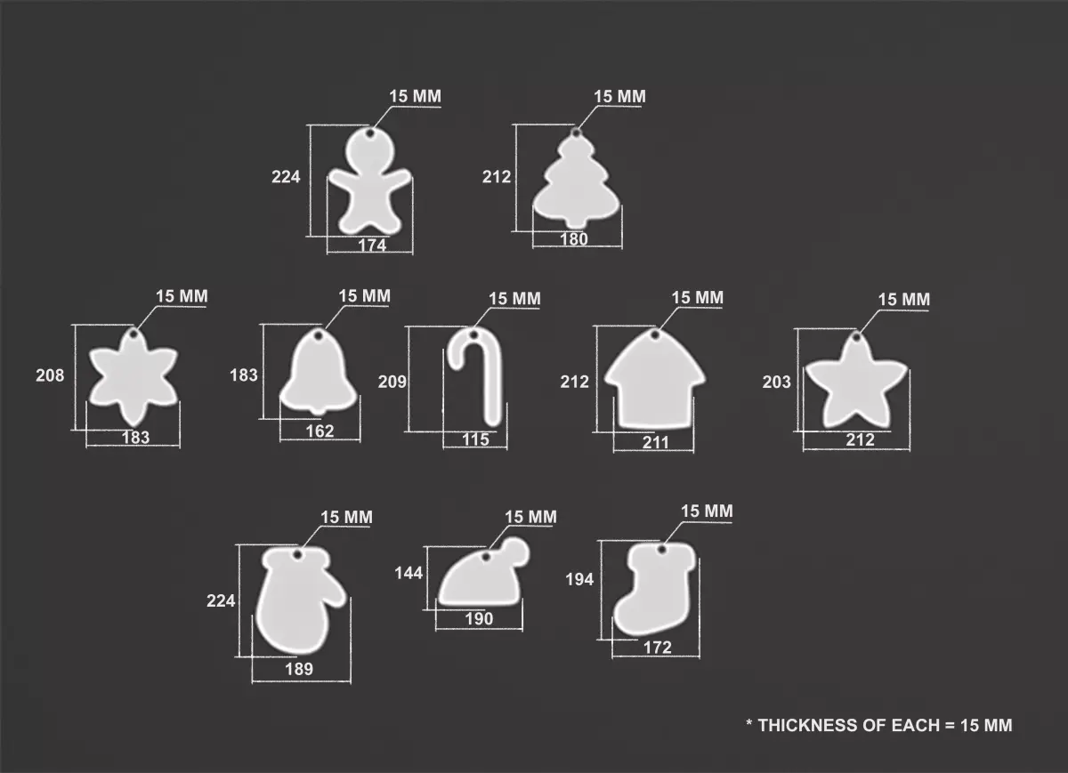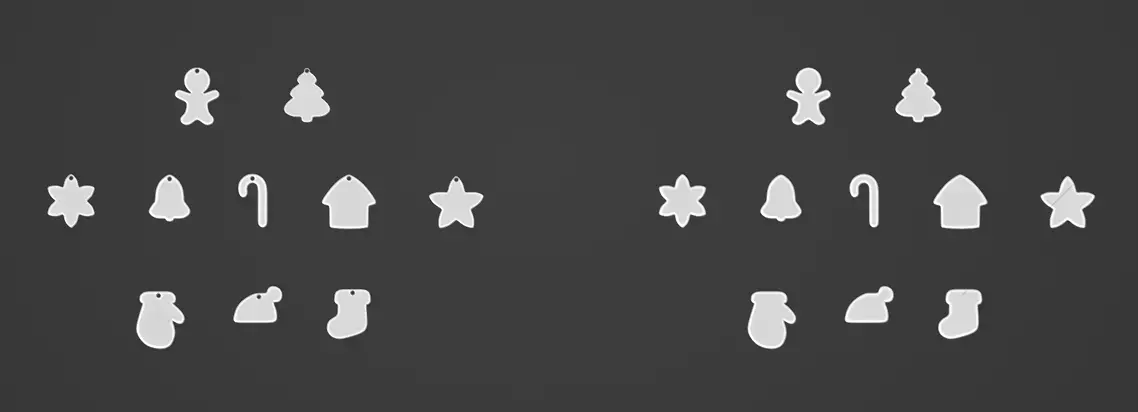 The pack includes classic festive shapes: gingerbread man, Christmas tree, star, bell, candy cane, house, mitten, boot, bear, and more.Clean, solid geometry optimized for reliable slicing and printing.